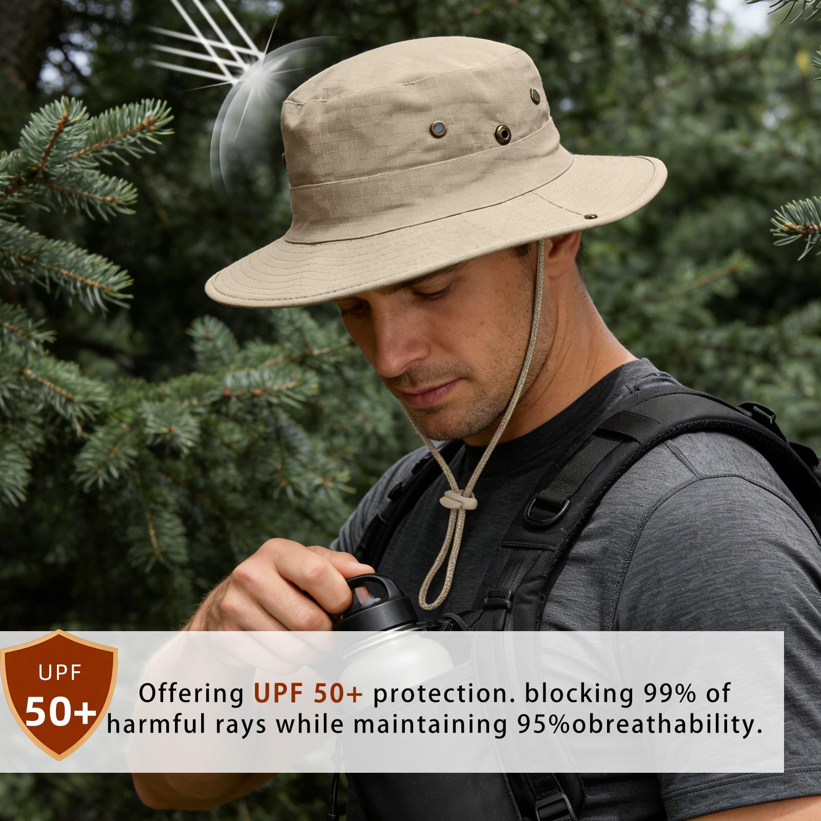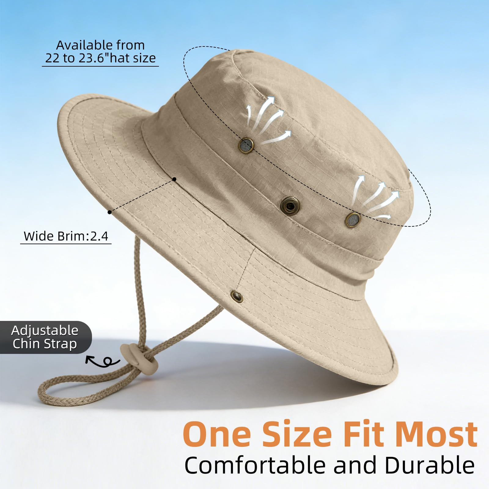 ADJUSTABLE DRAWSTRING: Adjustable chin drawstring for fixing the sun hat, especially in windy days.