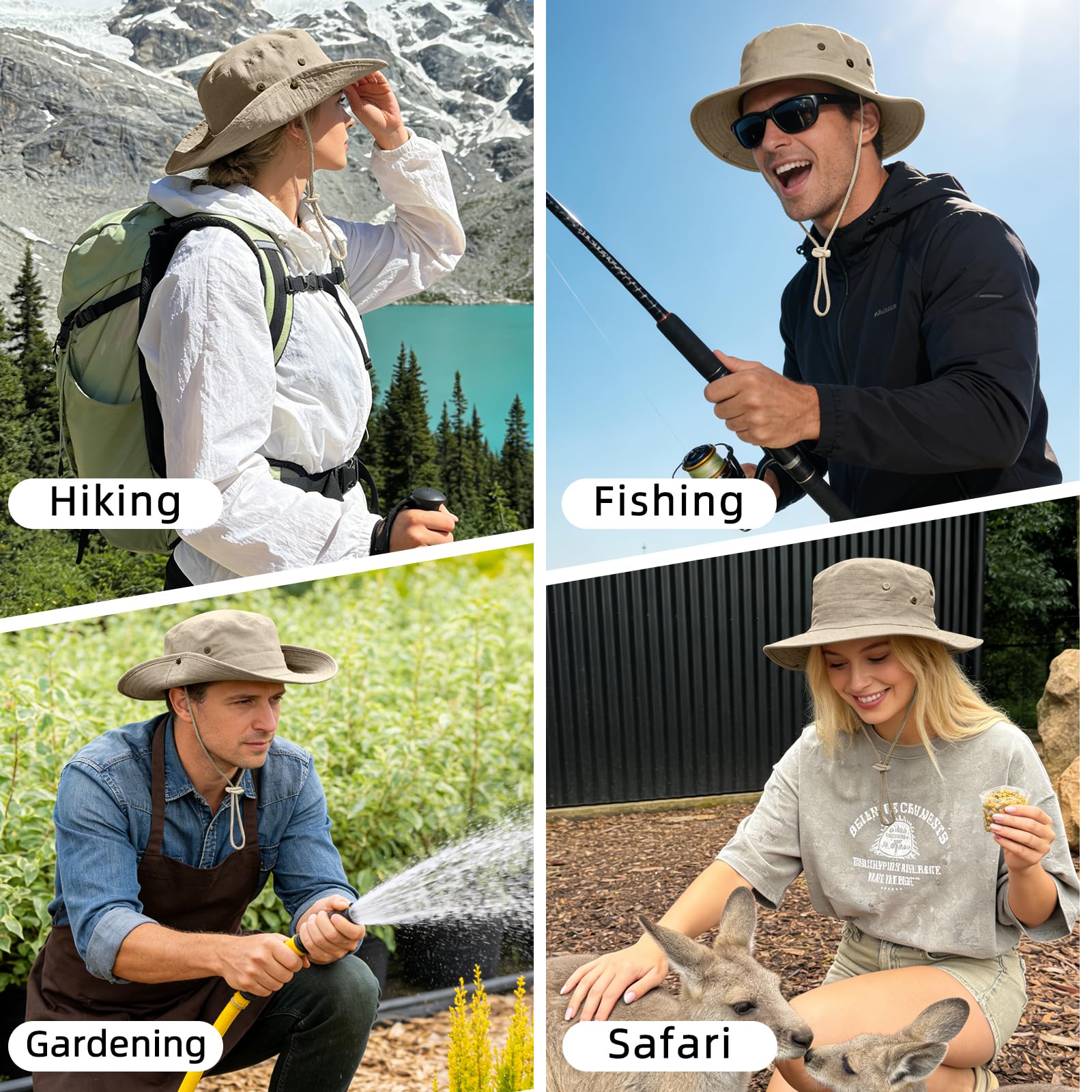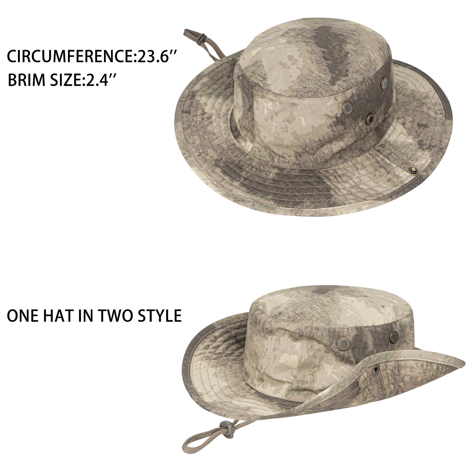 SAFARI STYLE BOONIE HAT: The foldable brim and side snaps offer versatile styling options, you can clasp the buttons on both sides of the hat to convert it into different styles (cowboy caps). With this hat, you can easily customize your look to suit any occasion.