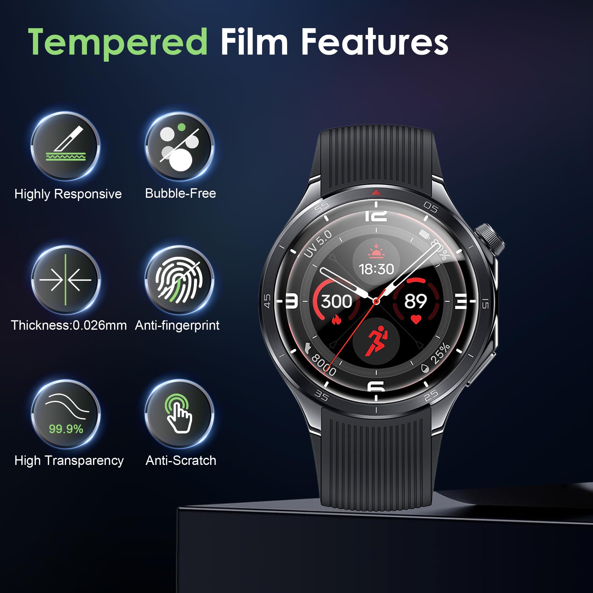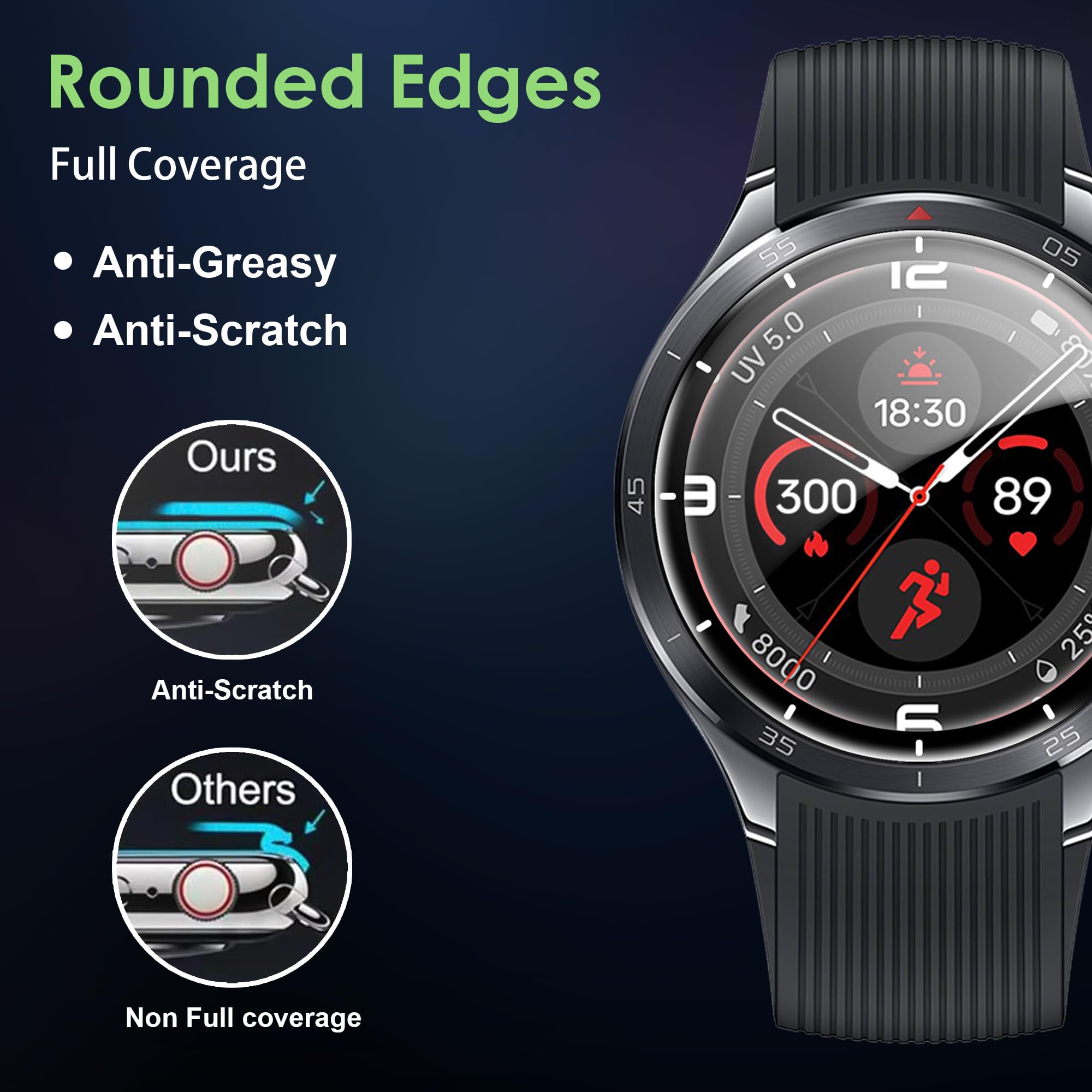 [Highly Transparent]This kind of screen protector is 99% High Definition Clarity, 99% light transmittance, keeps the brightness and colorful image quality of your OnePlus Watch 3 43mm screen protector