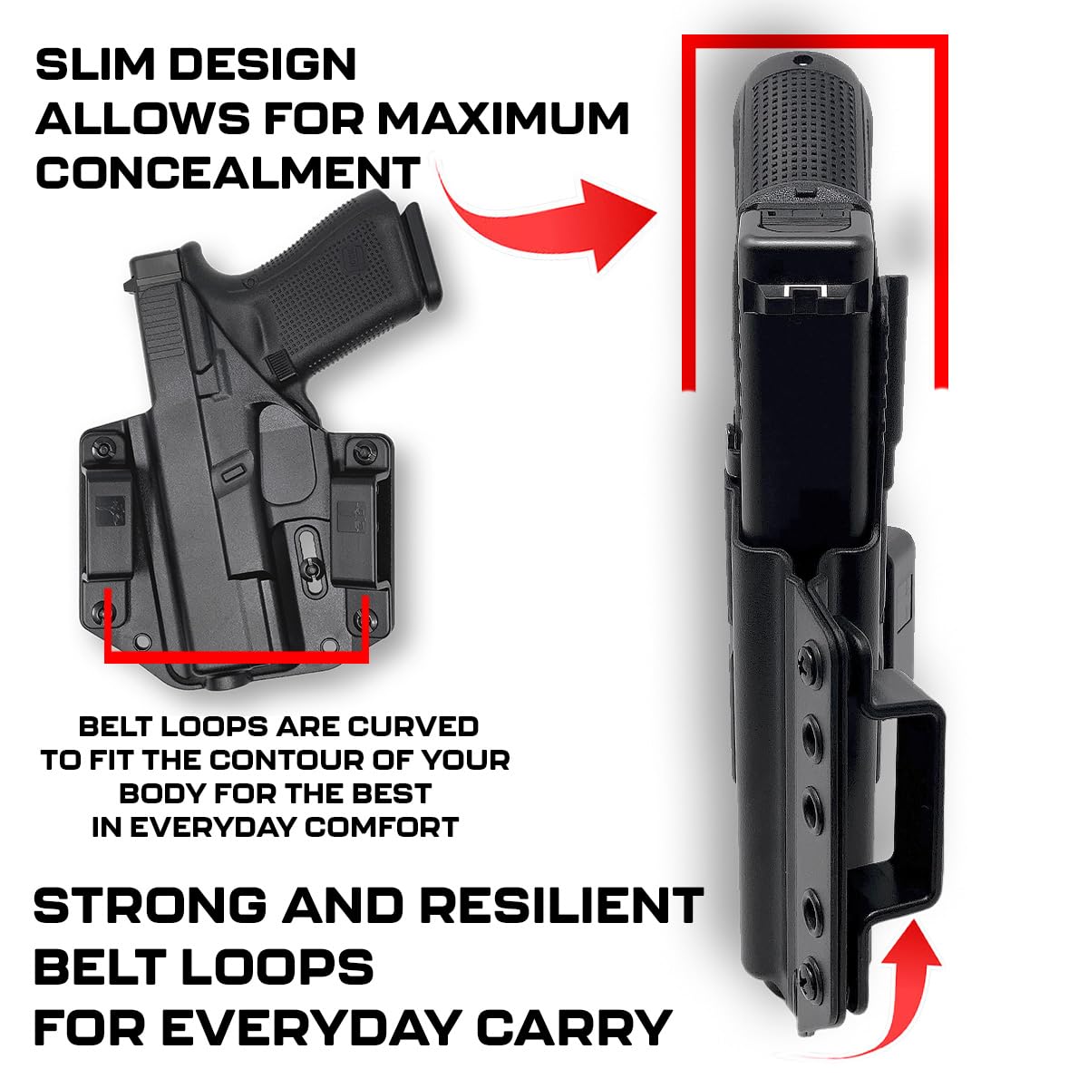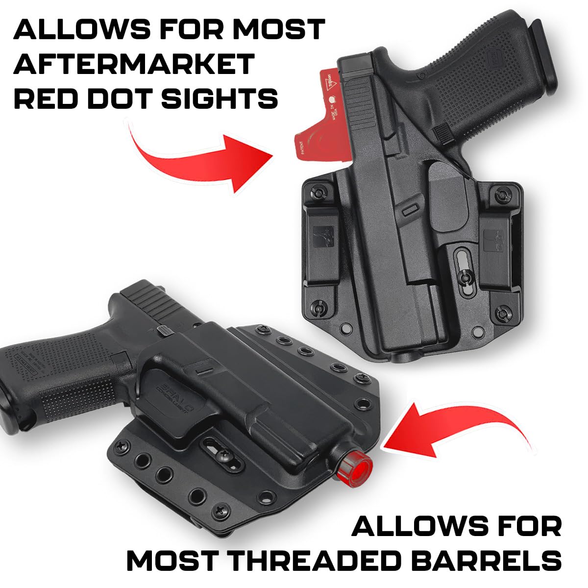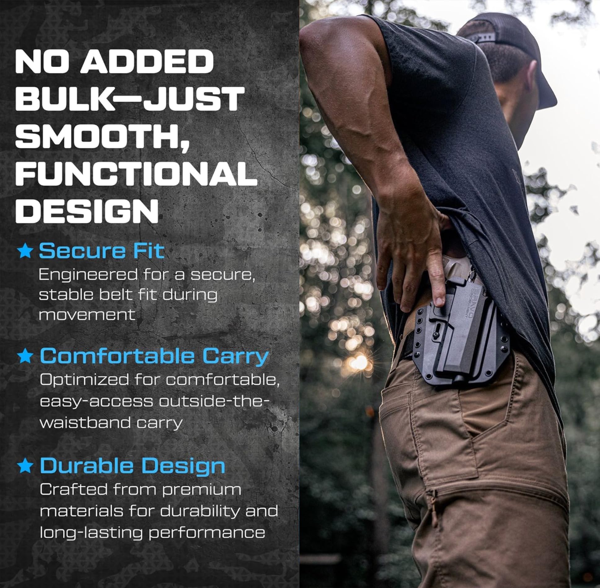 The Bravo Concealment Adaptive (BCA) OWB concealed carry holster is designed to be the best outside the waistband option for everyday concealed carry. Bravo Concealment takes comfort to a level you did not realize was possible. Our outside the waistband (OWB) holster fits your gun perfectly. This is because we design our molds in-house with the latest CAD design. We use real guns to design your holster. We 3-D scan the actual gun and build a solid off the cloud for the most precise fit. Whether you open carry or conceal carry, the BCA OWB holster rides high and close to the body for maximum concealment while perfectly fitting your gun.