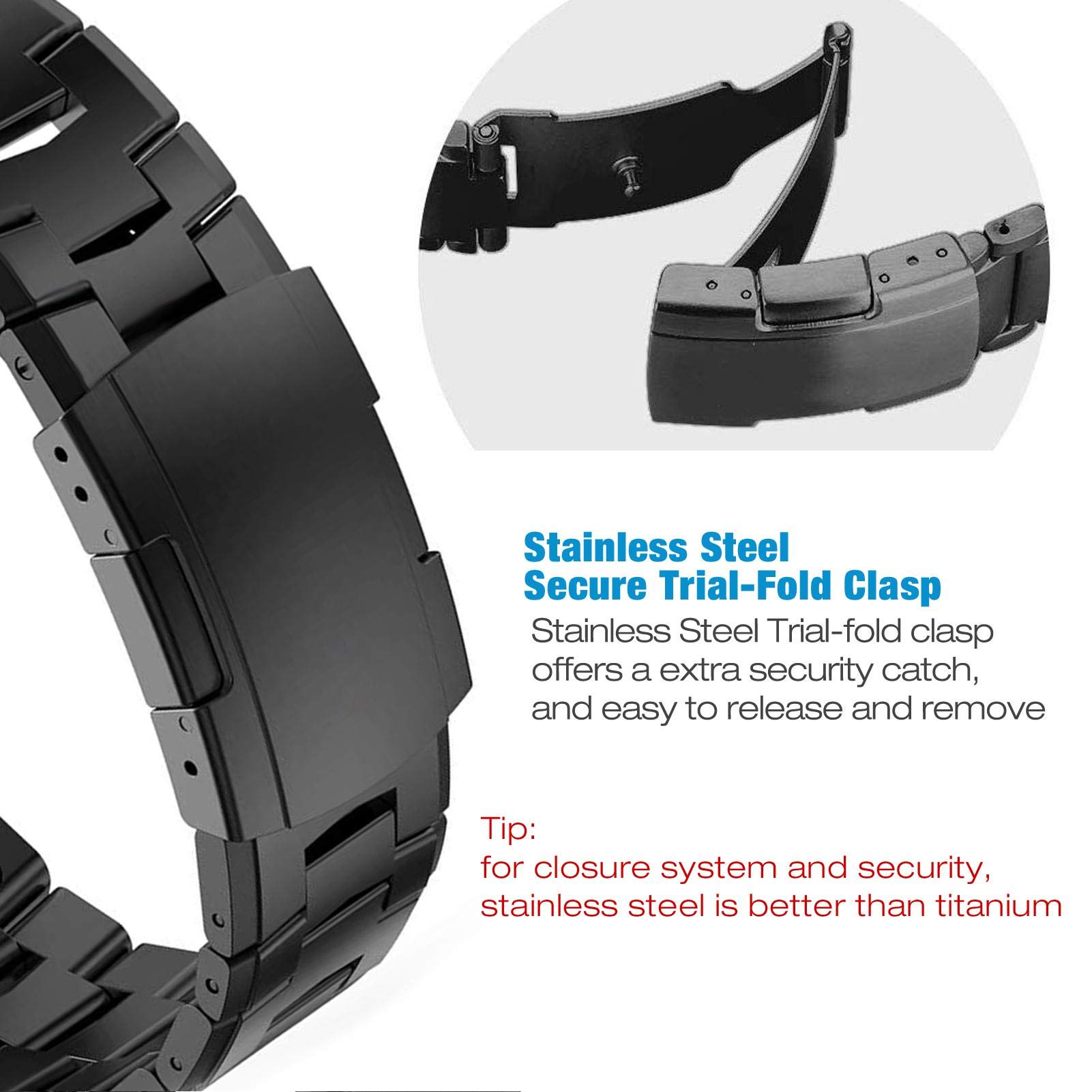 ▲ Titanium Steel Material-- Innovative Titanium Steel links strap, delicate craftsmanship for a smooth surface and lightweight structure, net weight(before resize): 2.927oZ(83g)