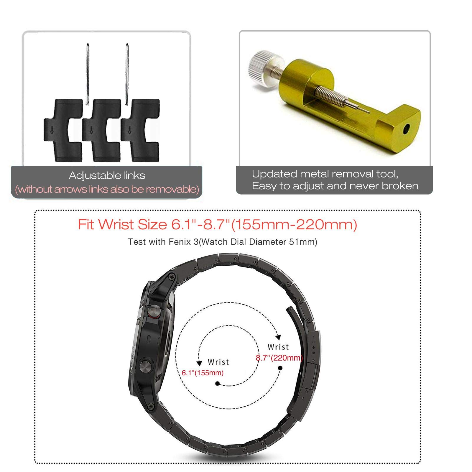 ▲Adjustable Band Length - Fit Wrist Size 5.9-8.66 inch(150mm-220mm) , links removable on this link bracelet by a small link removal tool that included in the package.