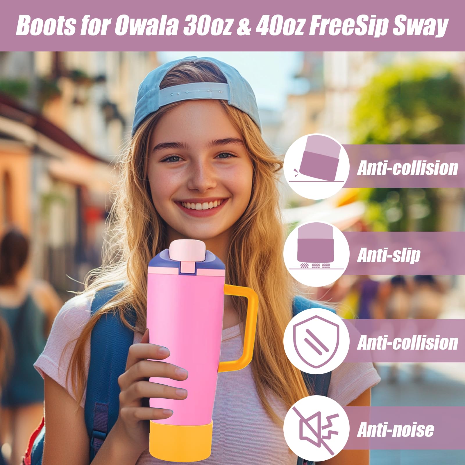 Custom Fit for Owala 30oz & 40oz Bottles: This silicone boot is tailored to fit for owala free sip sway 30oz and 40oz tumbler bottles perfectly, enhancing stability and protection while preserving the bottle’s sleek, original design