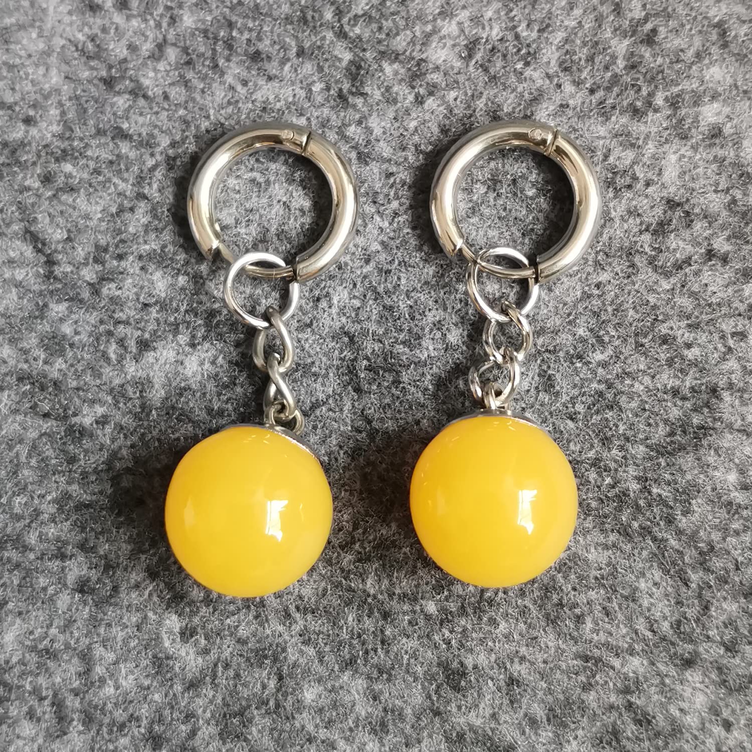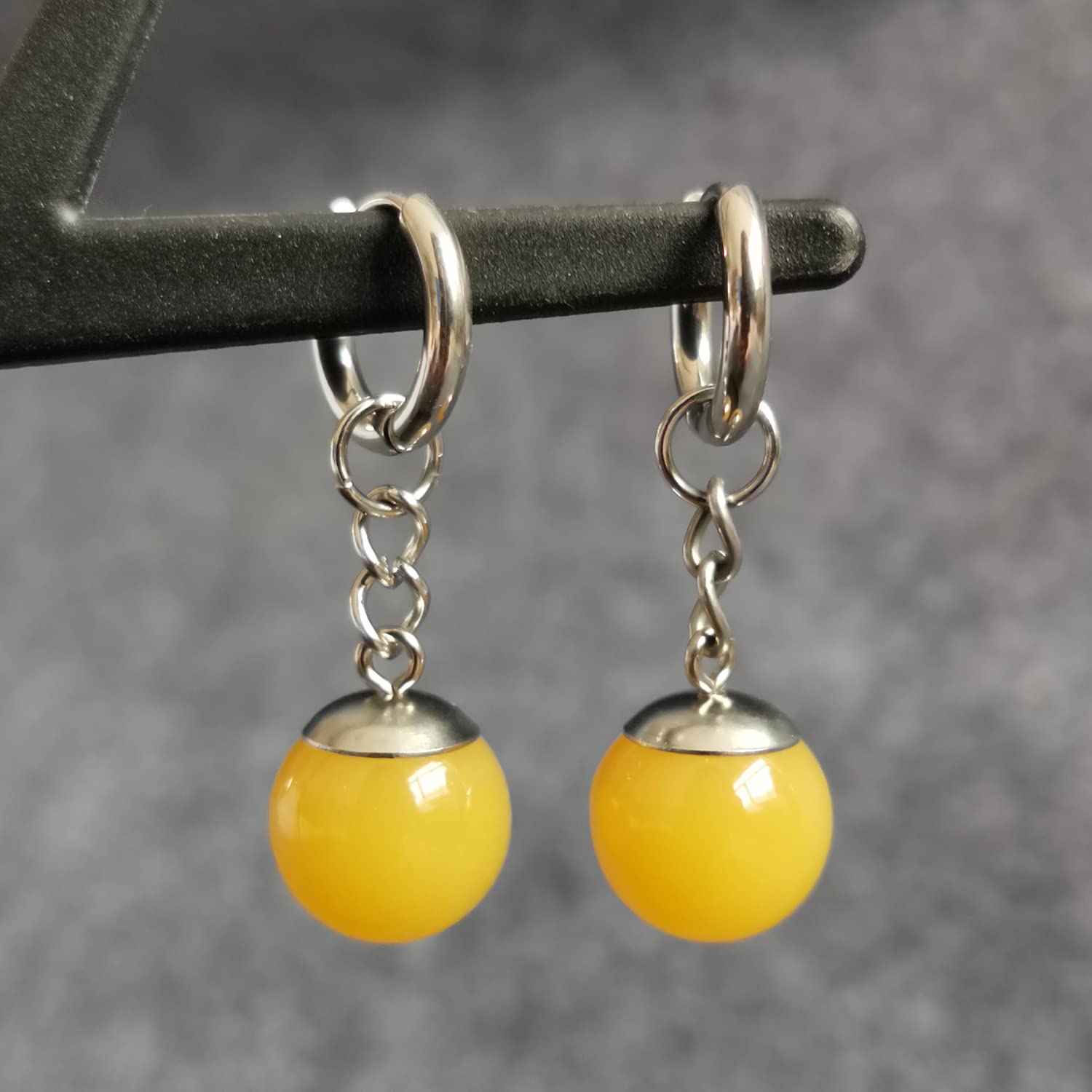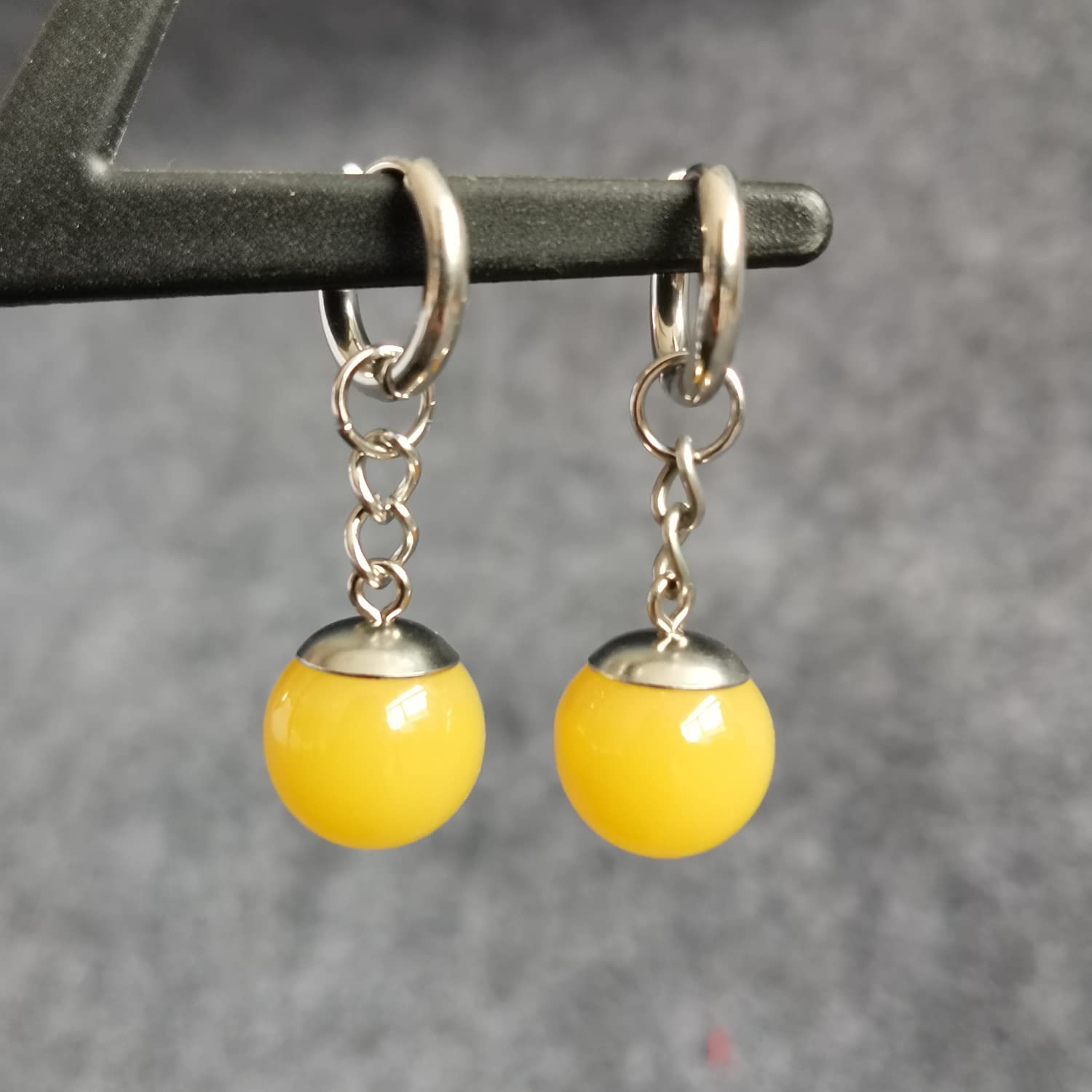 The balls are made of light resin.Wearing these earrings,you will not feel heavy at all
