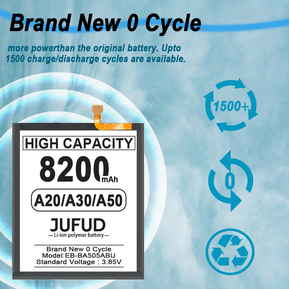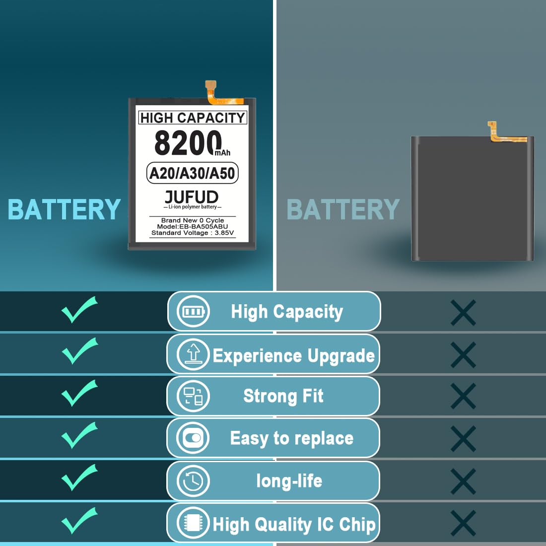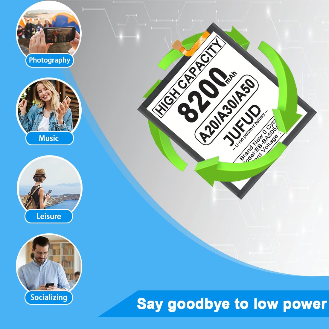 【Strong power】8200mAh higher capacity fit for Galaxy A20 A30 A50, 0 cycles of new electricity, Extend battery life and phone standby time, solve to the trouble of insufficient old batteries!