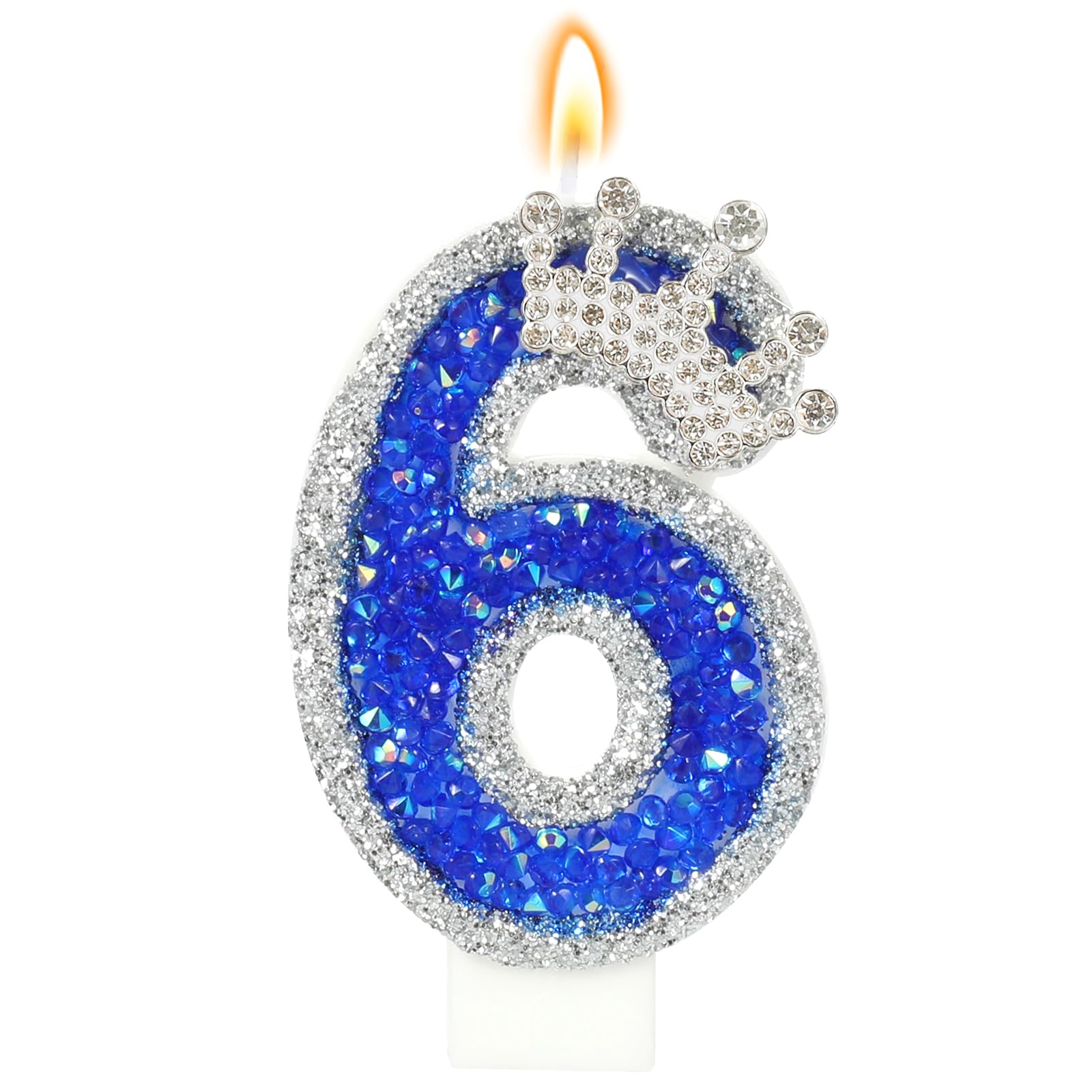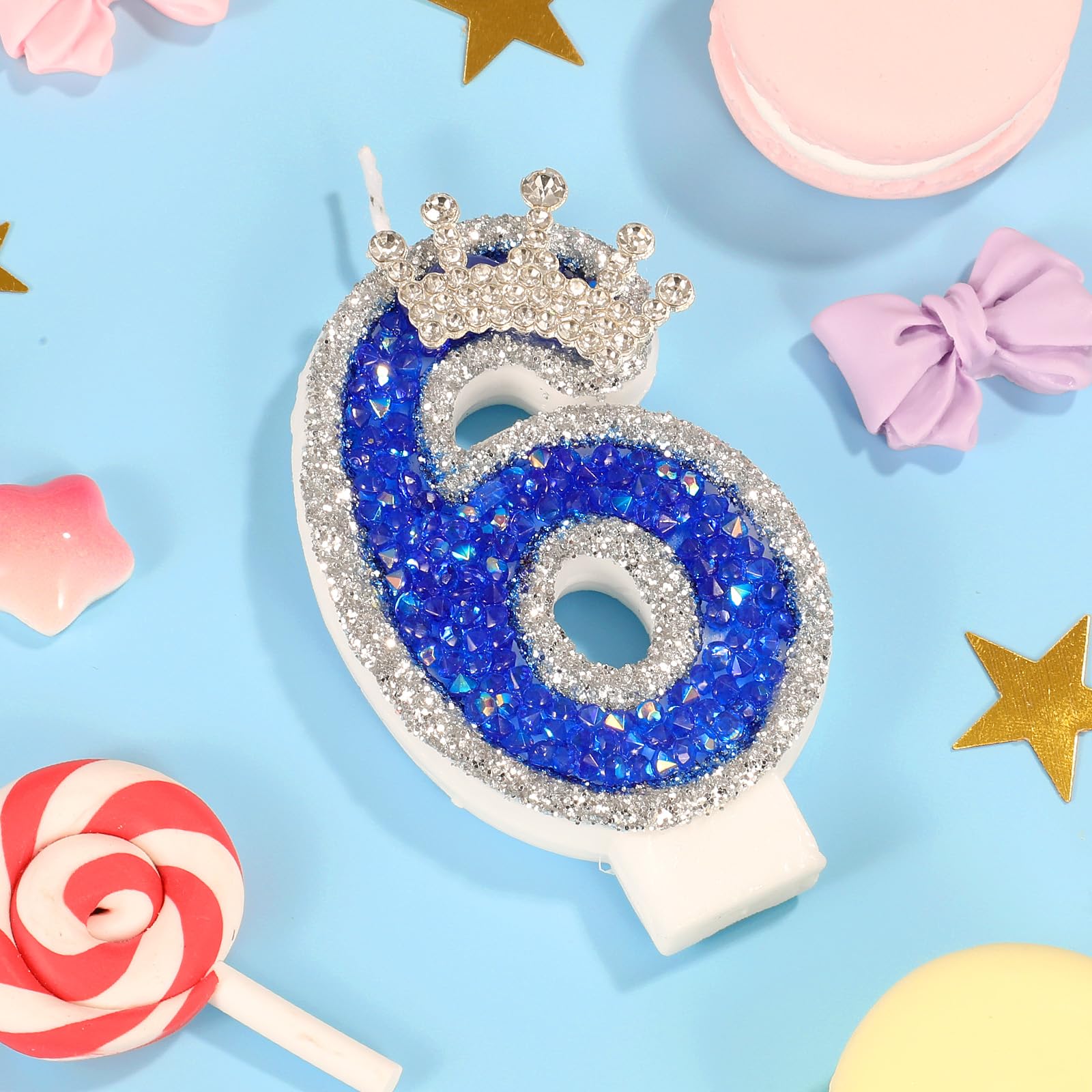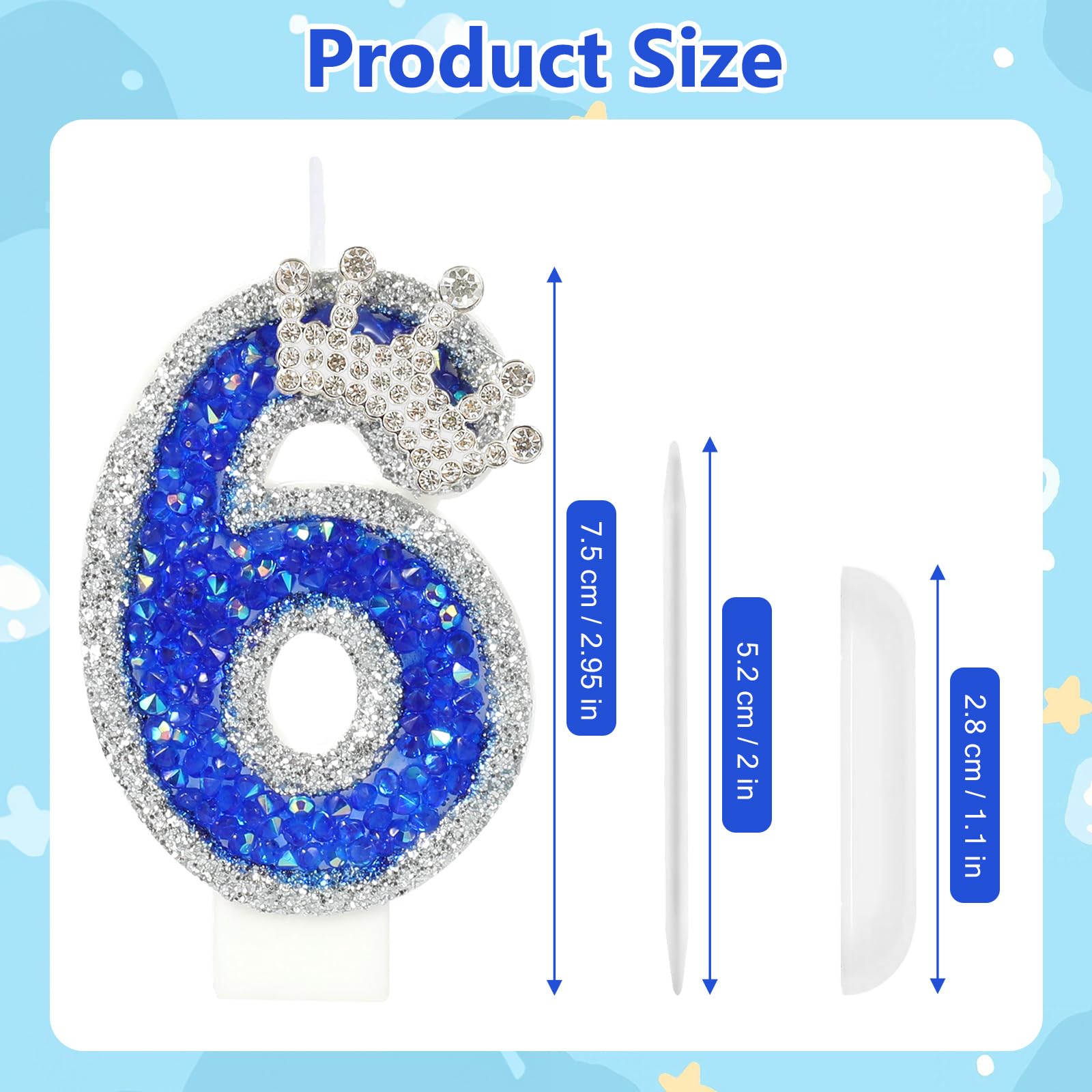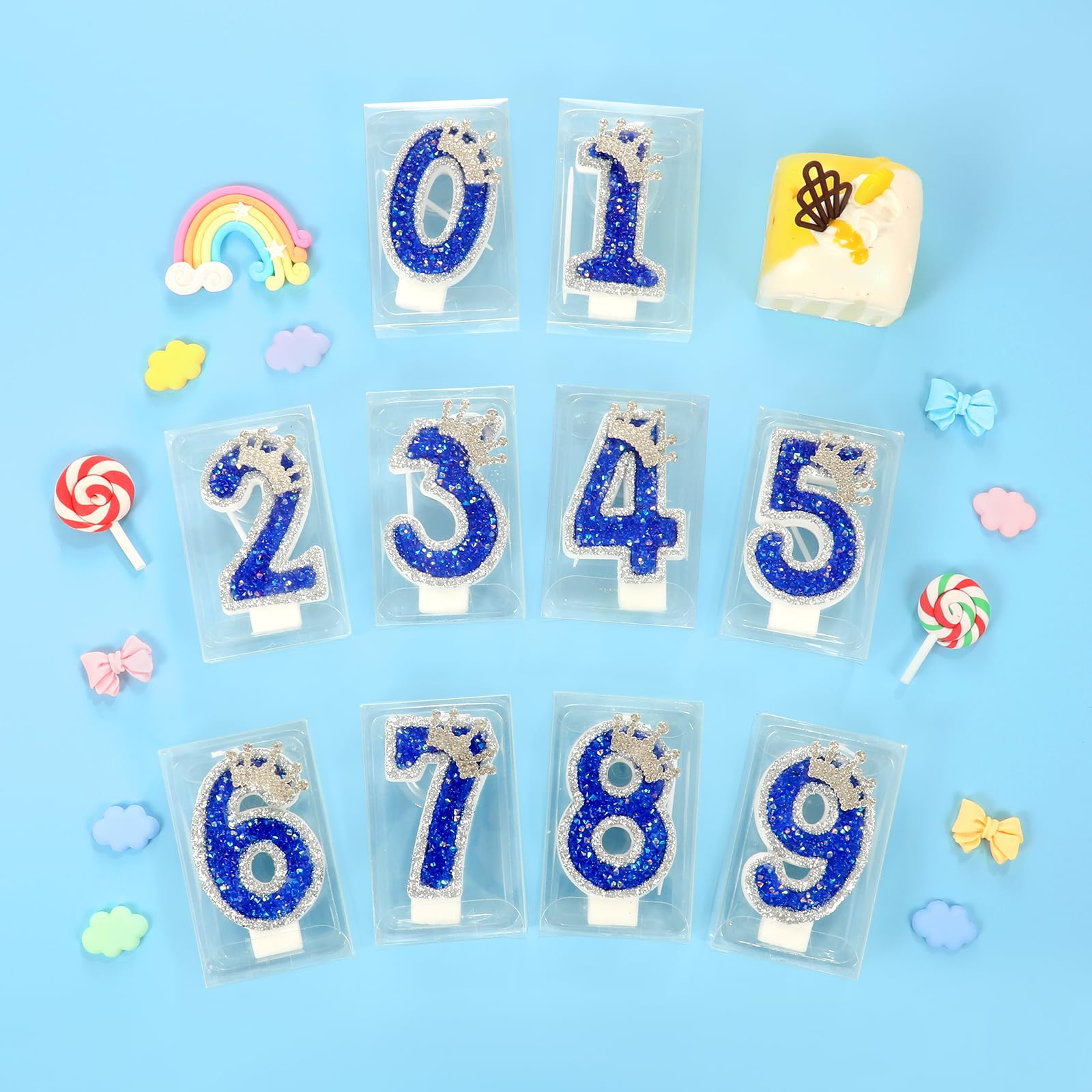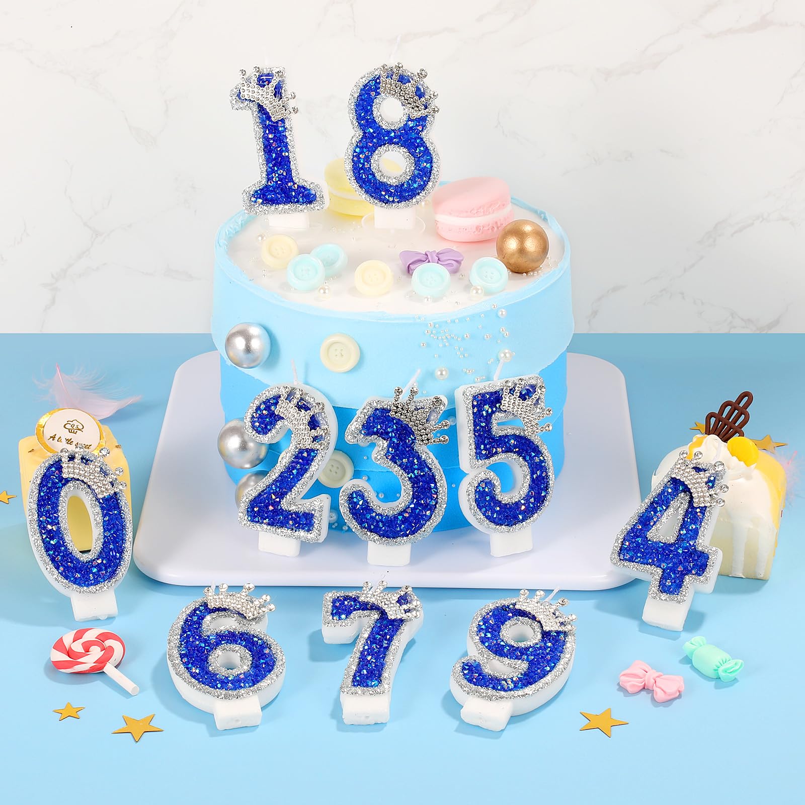 【Pretty Appearance】This blue number candle is inlaid with sparkling sequins and delicate crown ornaments, beautifully made, make your cake more beautiful.