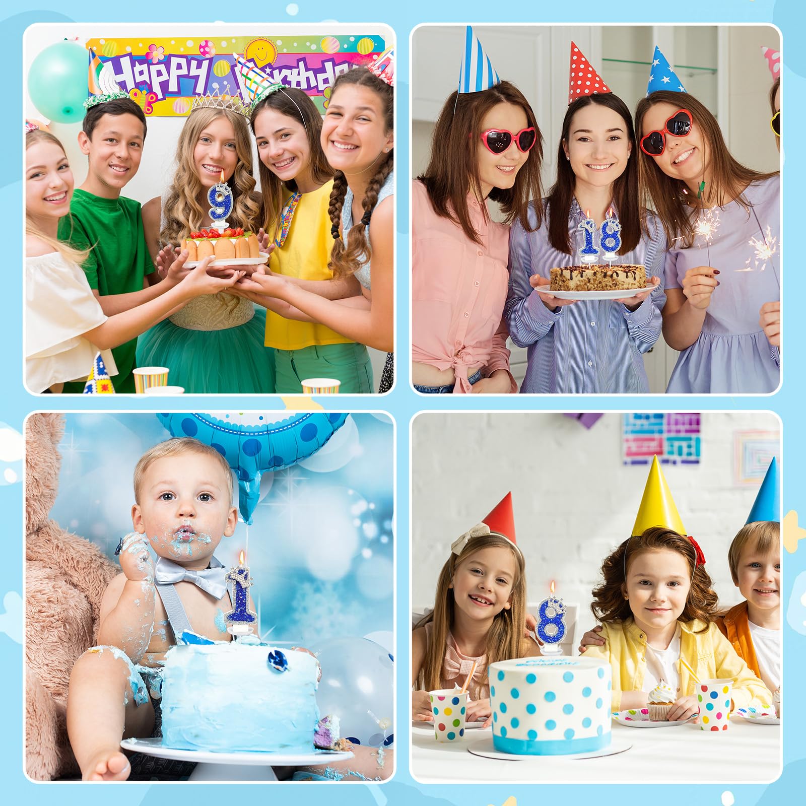 【Safe Candles】The blue birthday candles are made of high quality wax, Smoke-free, non-toxic, odorless, no dripping wax, safe to use. Each candle contains a candle holder, ensuring your cake is wax-free and pollution-free.