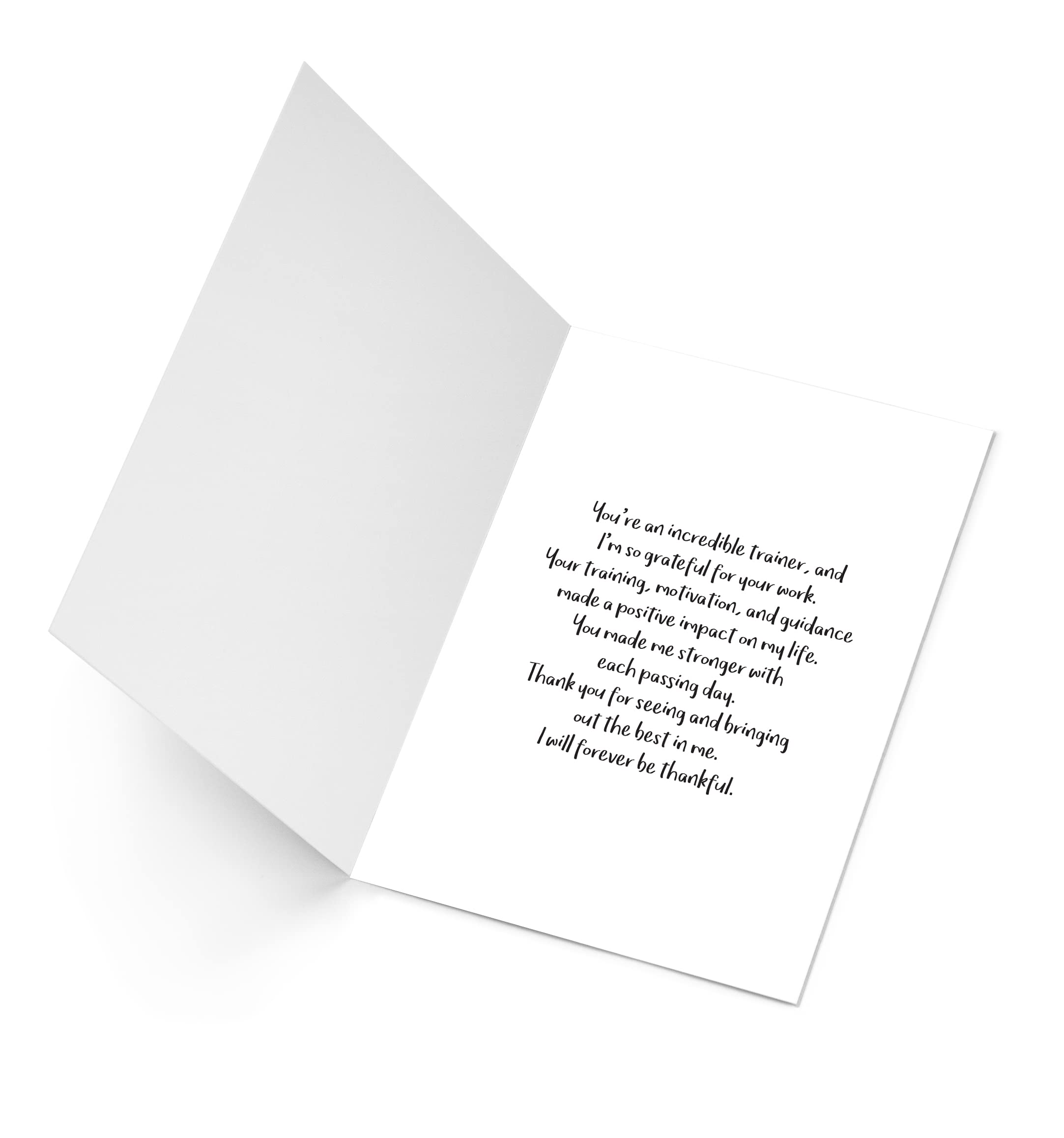 An ideal thank-you card for personal trainers who help you reach your fitness milestones.