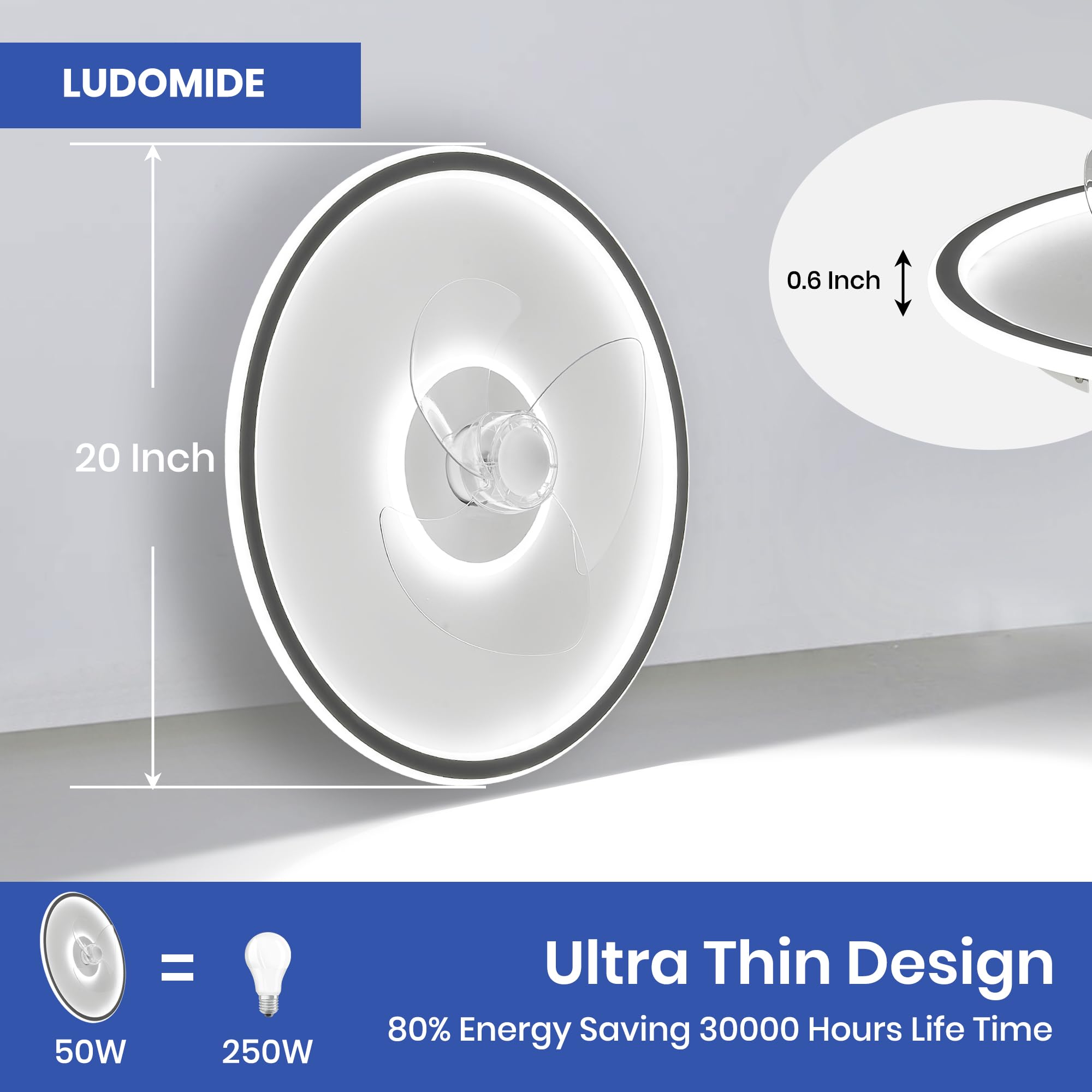 【Ultra Thin Design Bedroom Ceiling Fan】Experience elegance with our exclusive ultra-thin fan light, featuring a sleek 4.5cm thick body that fits snugly against the ceiling. When blades are off, it illuminates as a fully lit LED ceiling light. Its streamlined design seamlessly blends into any space, creating sophistication. Discreet installation and minimalistic presence enhance aesthetics without overpowering the room.
