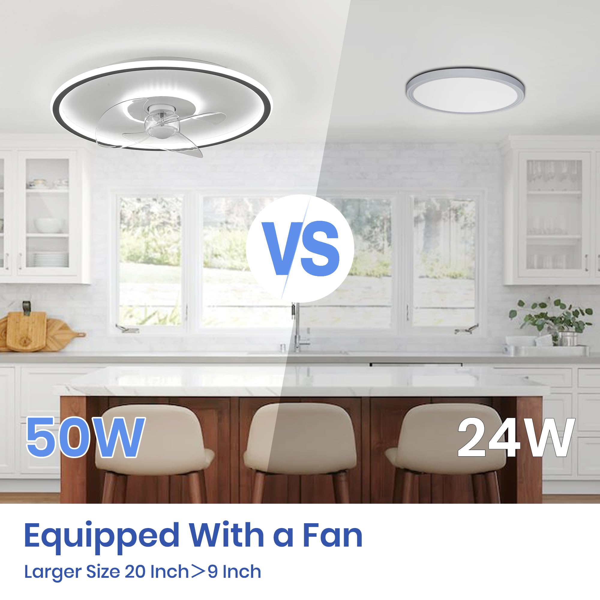【50W LED Ceiling Fan Light】The 50-watt LED ceiling fan provides lighting equal to a 250W bulb, saving up to 80% energy while being environmentally friendly. It boasts a lifespan of 30,000 hours, ensuring long-lasting performance and reducing the need for replacements. Enjoy reliable lighting without burned-out bulbs.