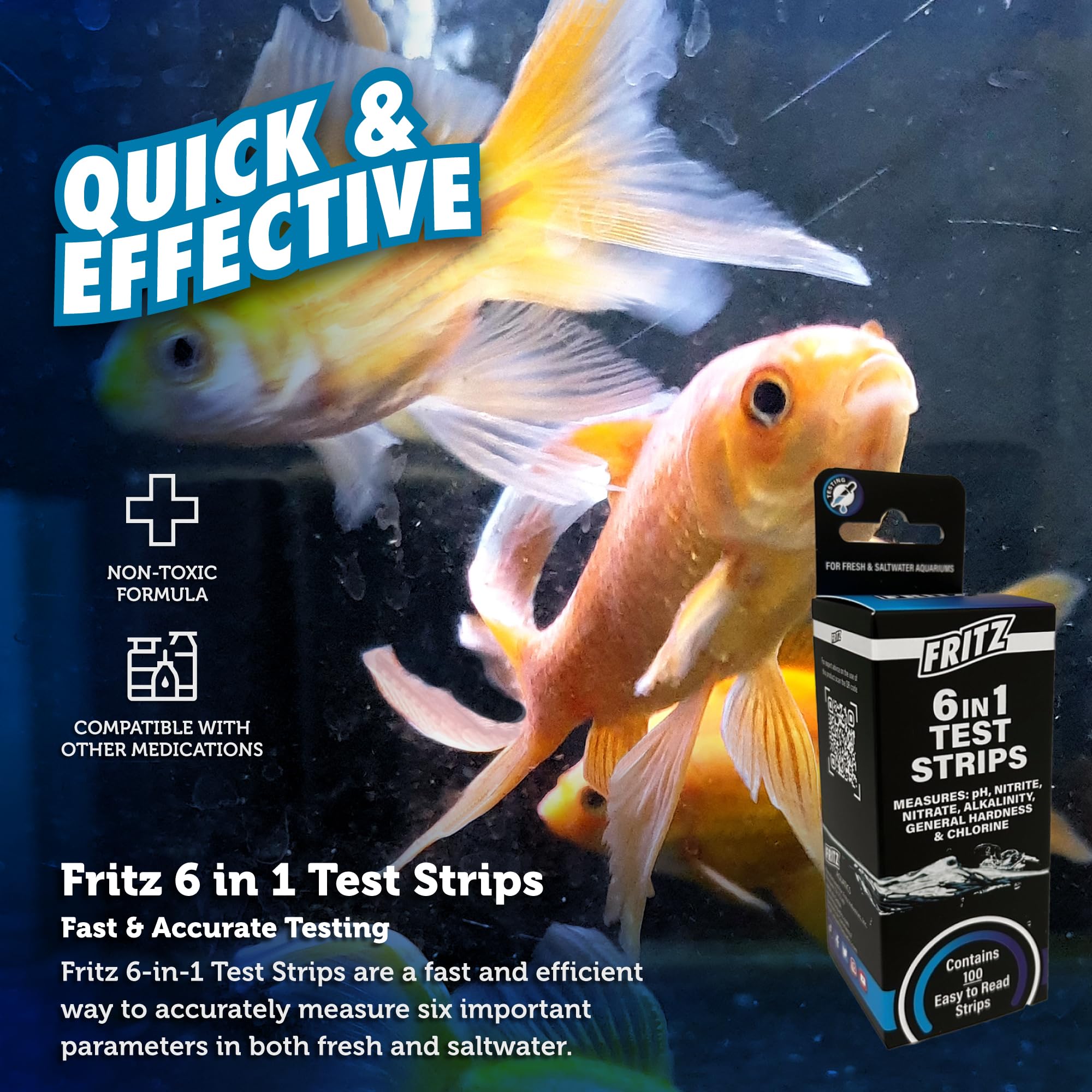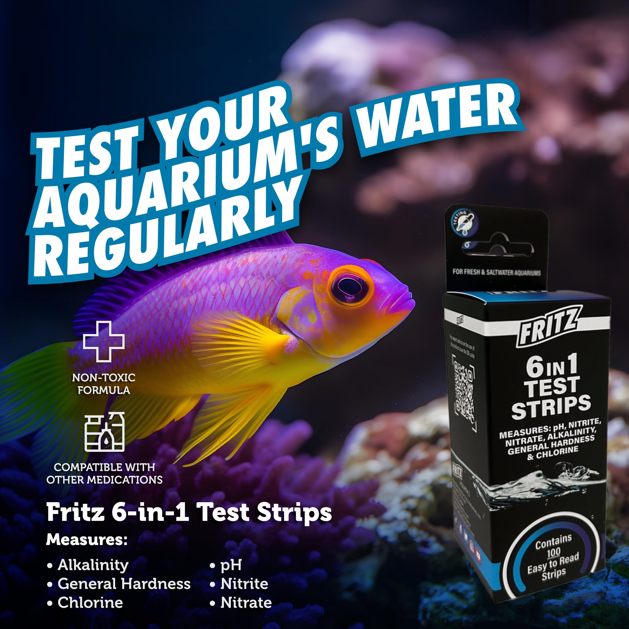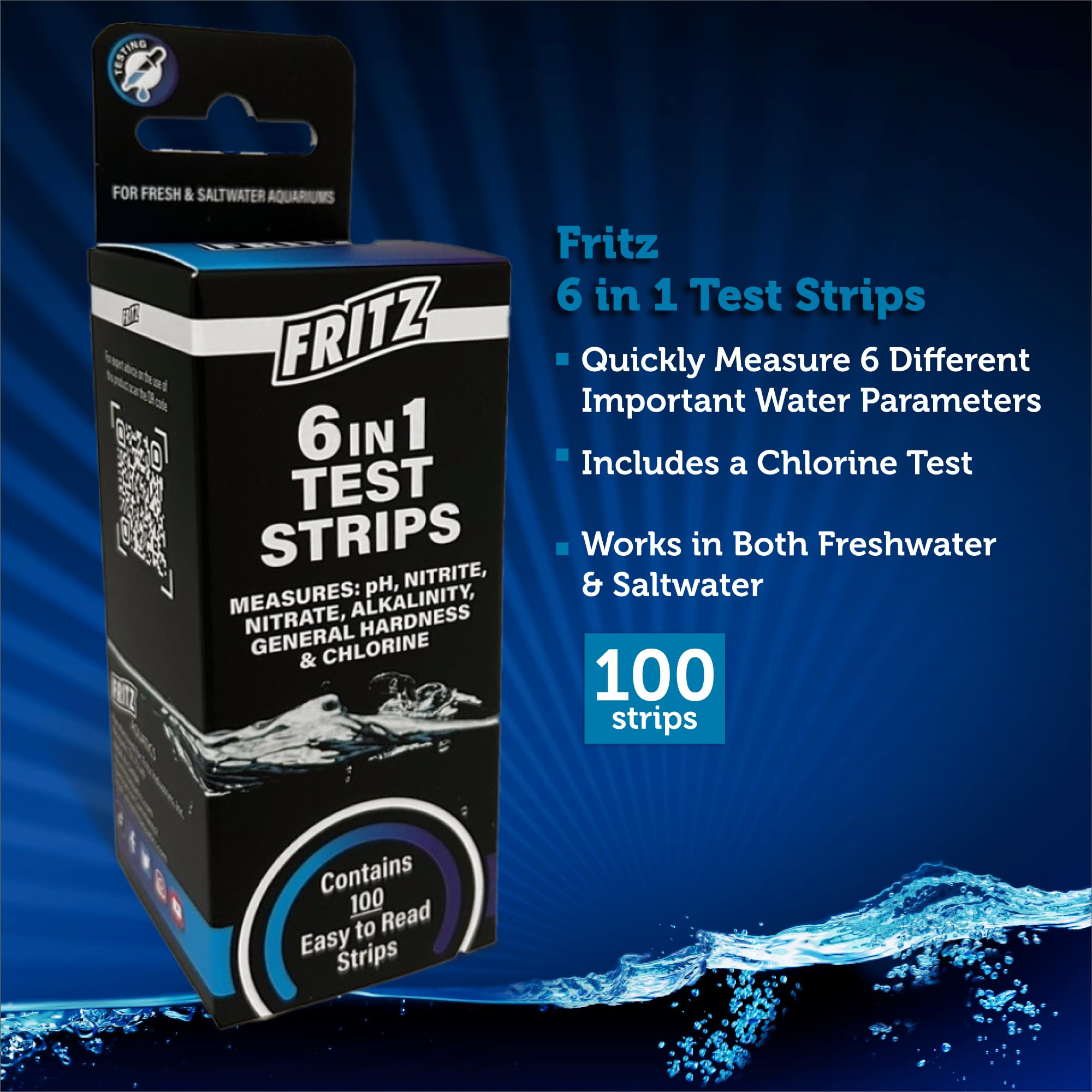 Fritz 6 in 1 Aquarium Test Strips - Monitor Nitrates, Nitrites, Water Hardness, Chlorine, Alkalinity and pH Level - 100 Count