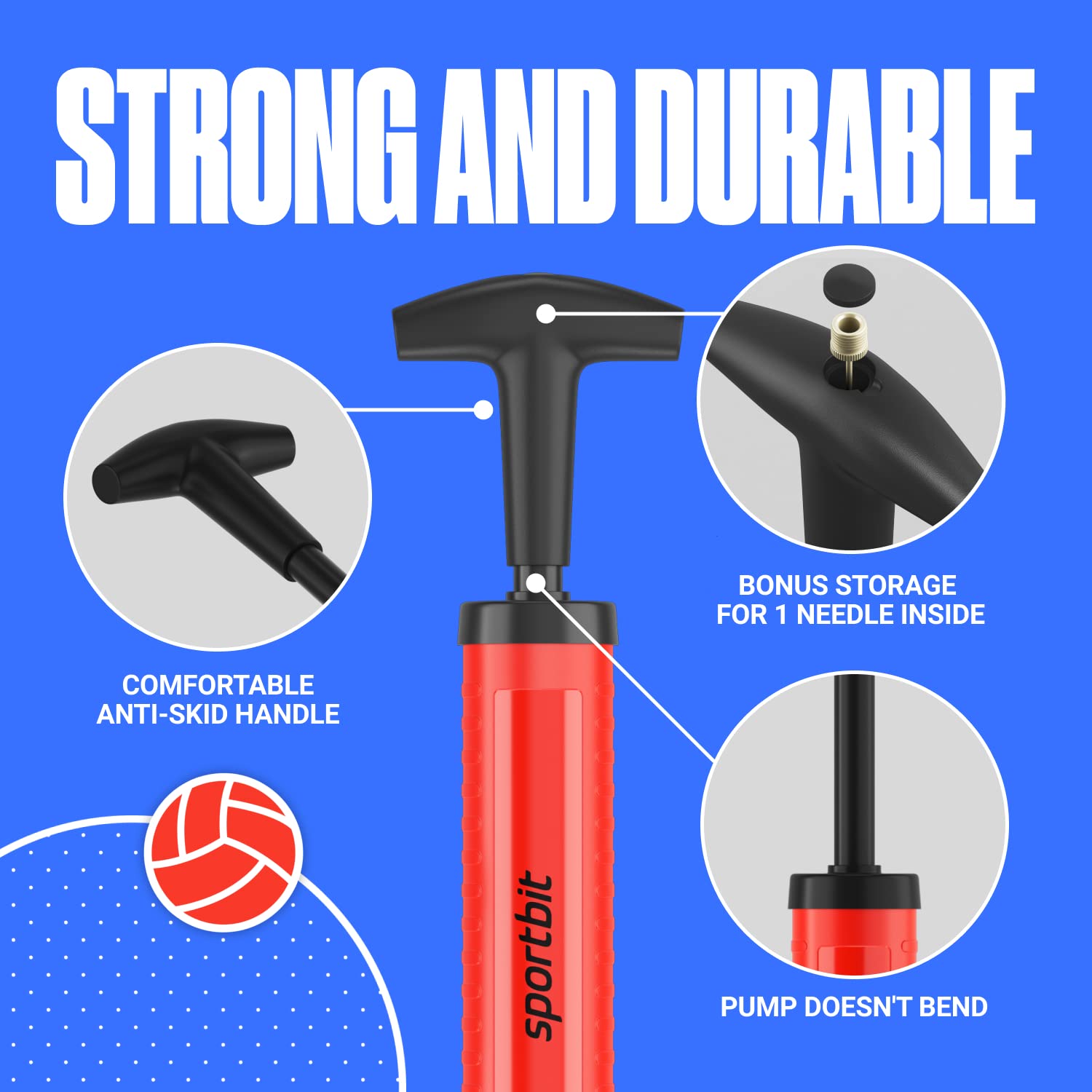 MULTIPURPOSE: The SportBit small air pump is good for almost all balls. Use the hand pump as a basketball pump, soccer ball pump, volleyball pump, or football pump. Take the mini air pump anywhere!