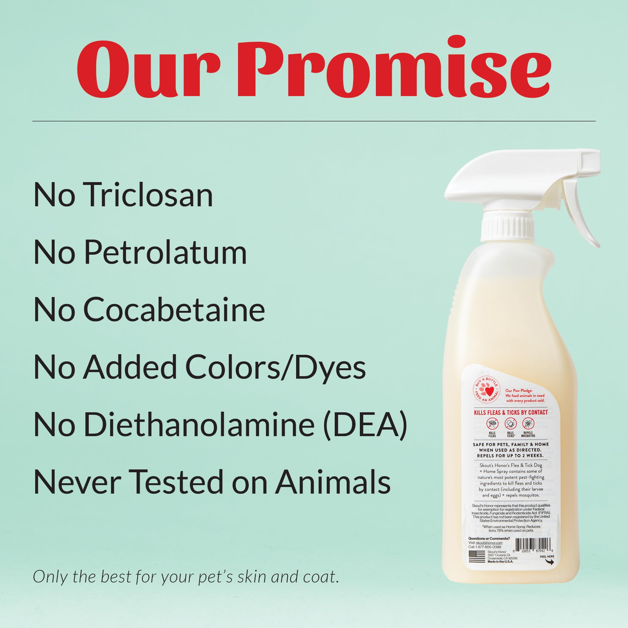 Natural Ingredients - Skout's Honor Flea and Tick Dog & Home Spray is a plant-powered and non-medicated solution, making it a safe and effective choice.