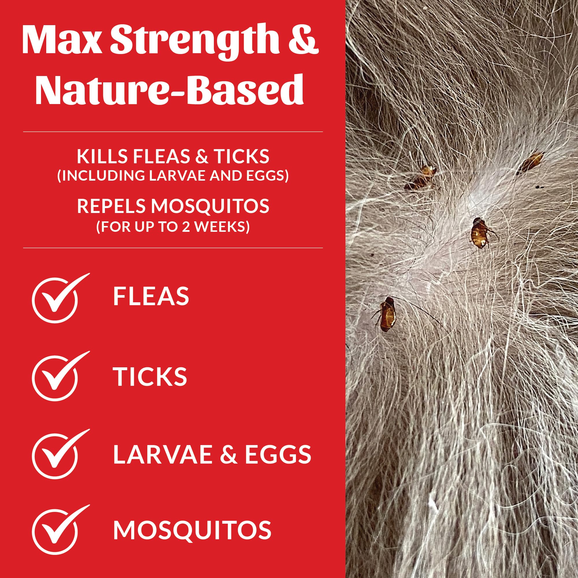 Max Strength Formula - effectively eliminates fleas and ticks on contact, including larvae and eggs, and fends off mosquitos for up to 2 weeks when used as directed.