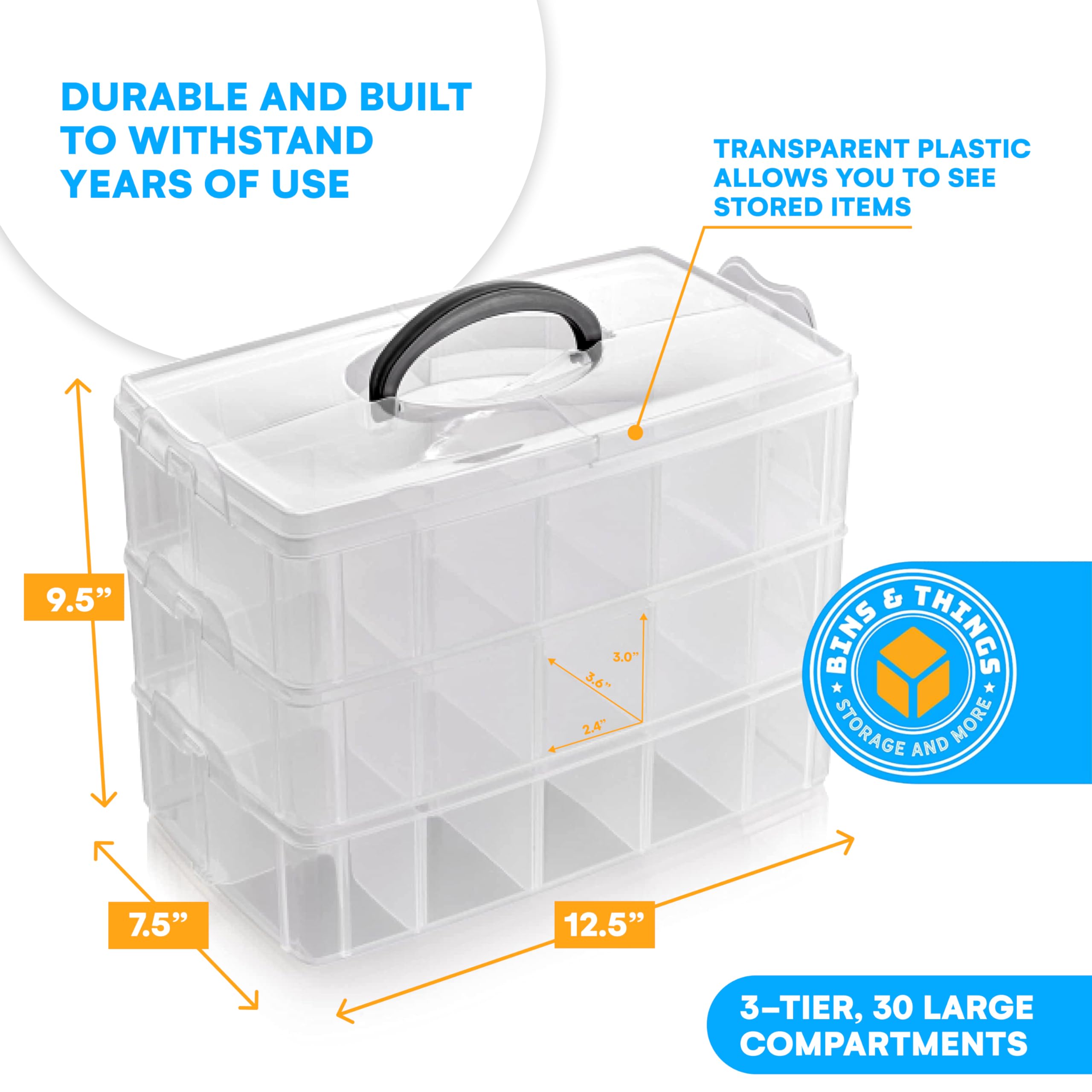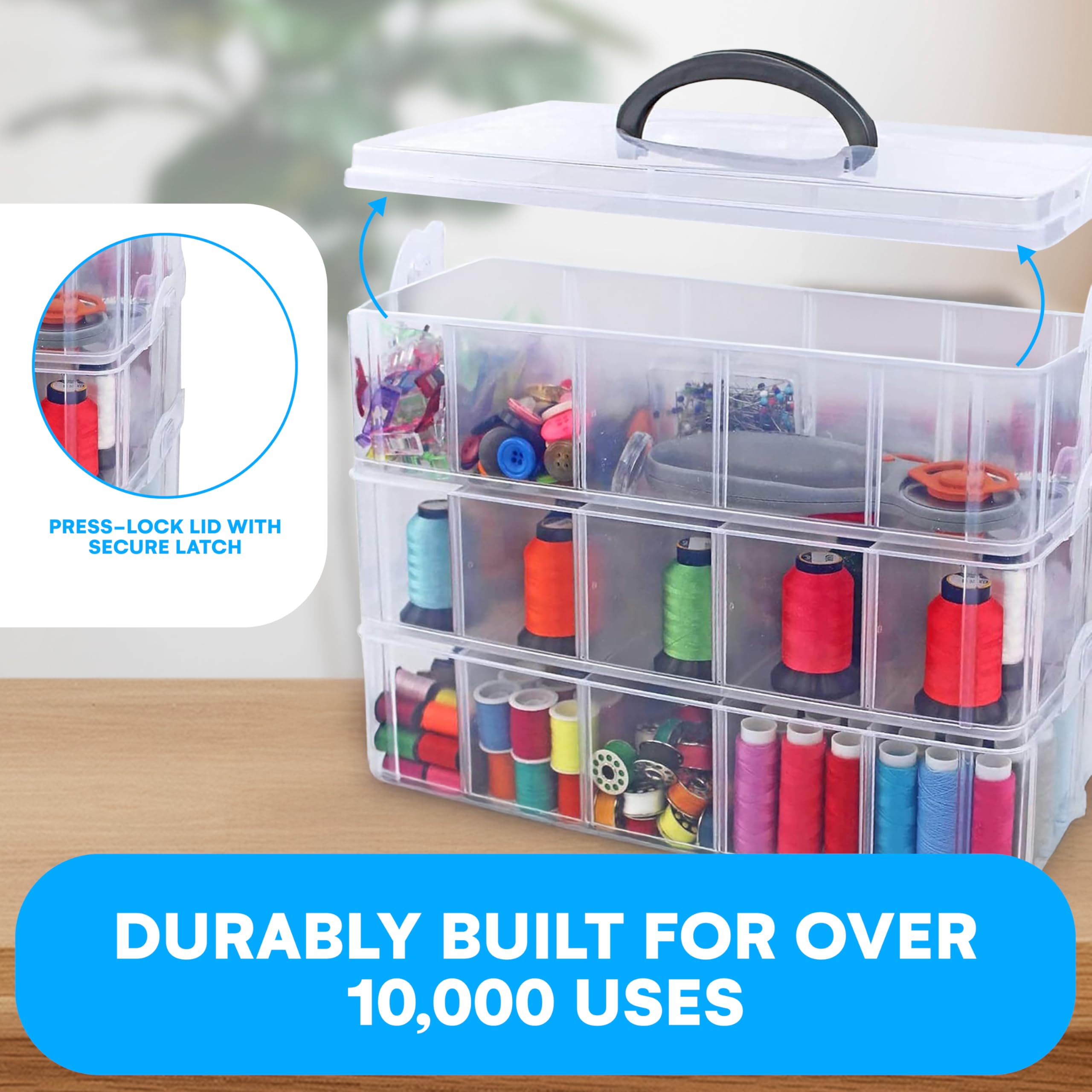 Three Stackable Layers for More Space: This 3-tier stackable storage container gives you vertical efficiency without clutter; Great for home crafters or sewing organizer for sewing supplies