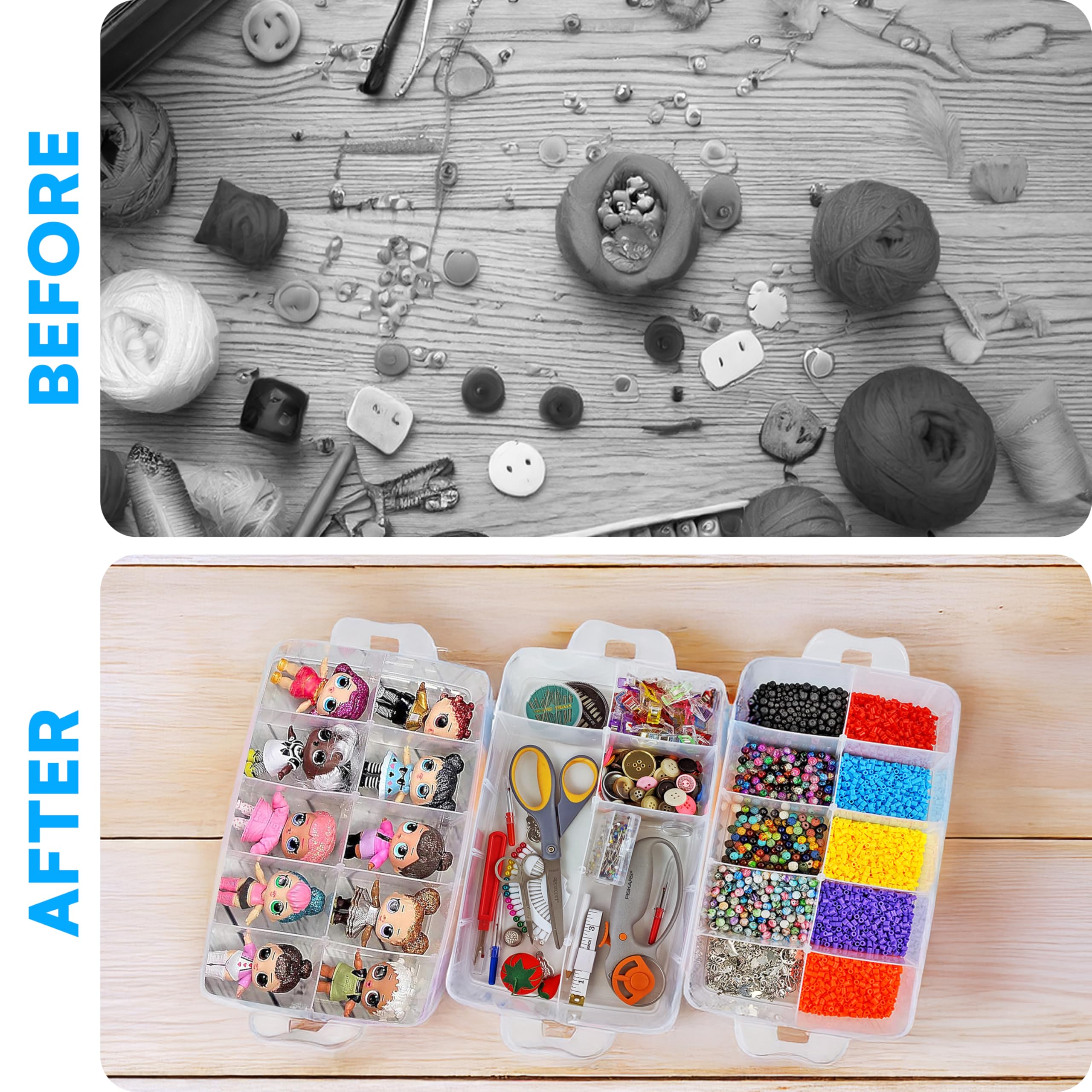 30 Compartments with Adjustable Dividers: Each tier has 10 compartments for organizing; Use as a 12.5" x 9.5" thread organizer or customize for bead storage organizer or small crafting accessories