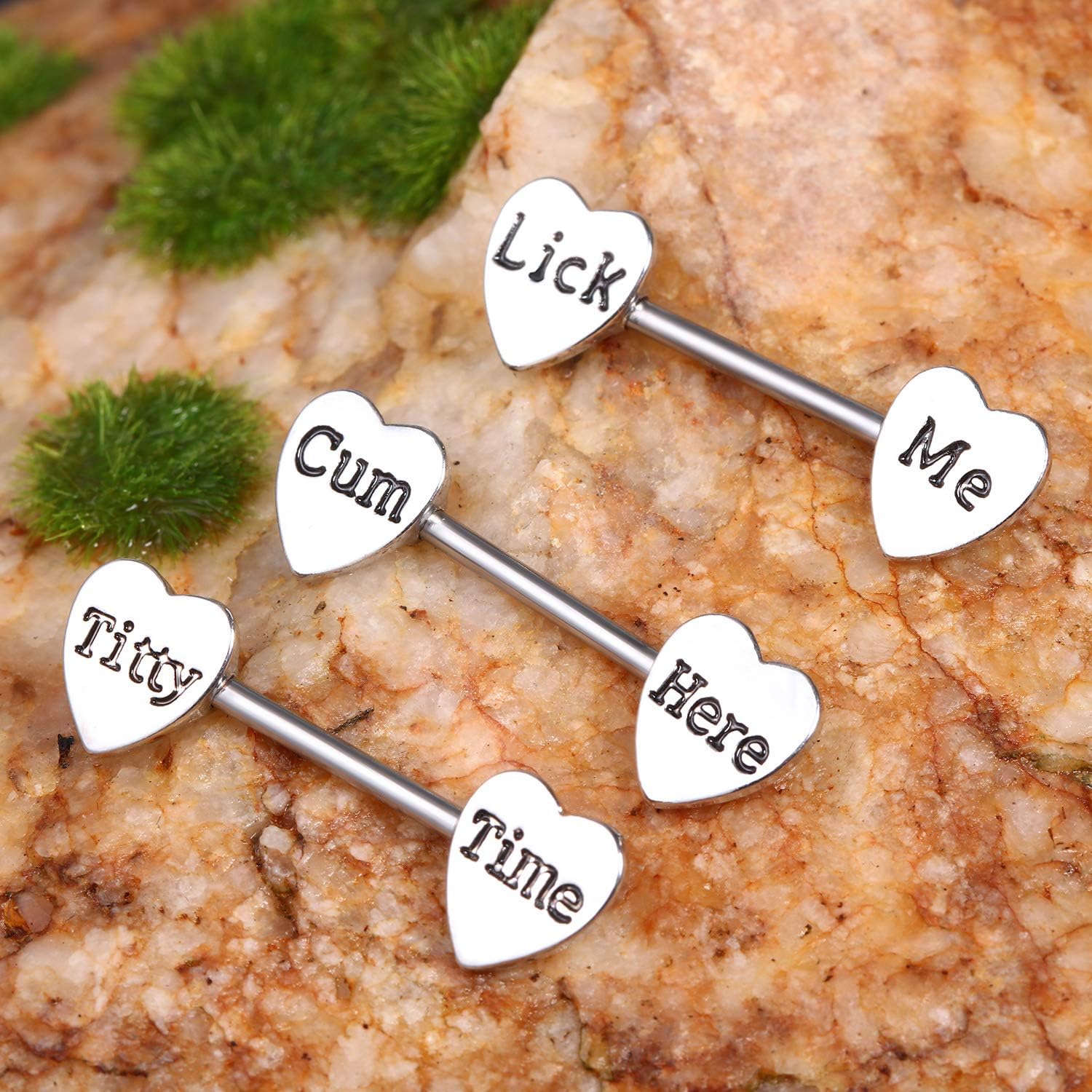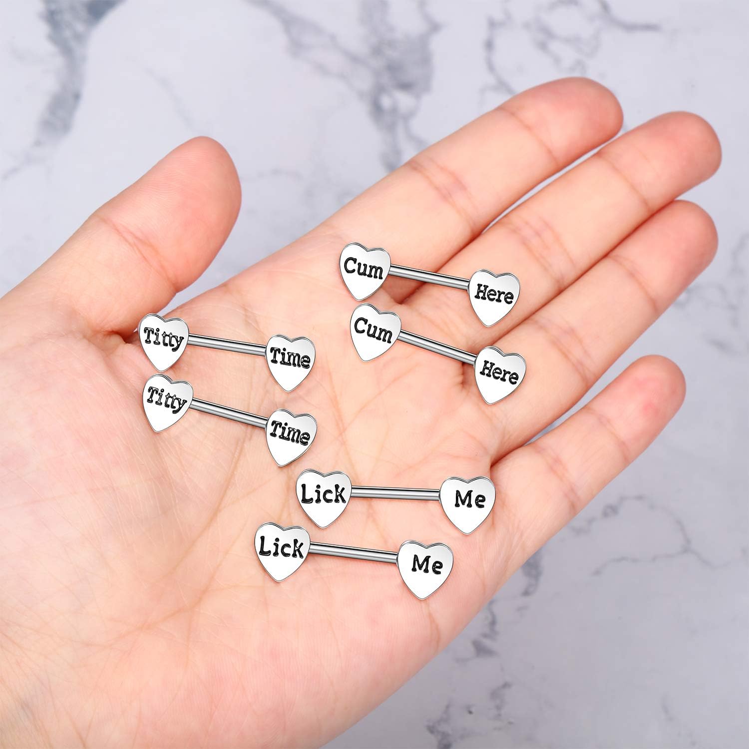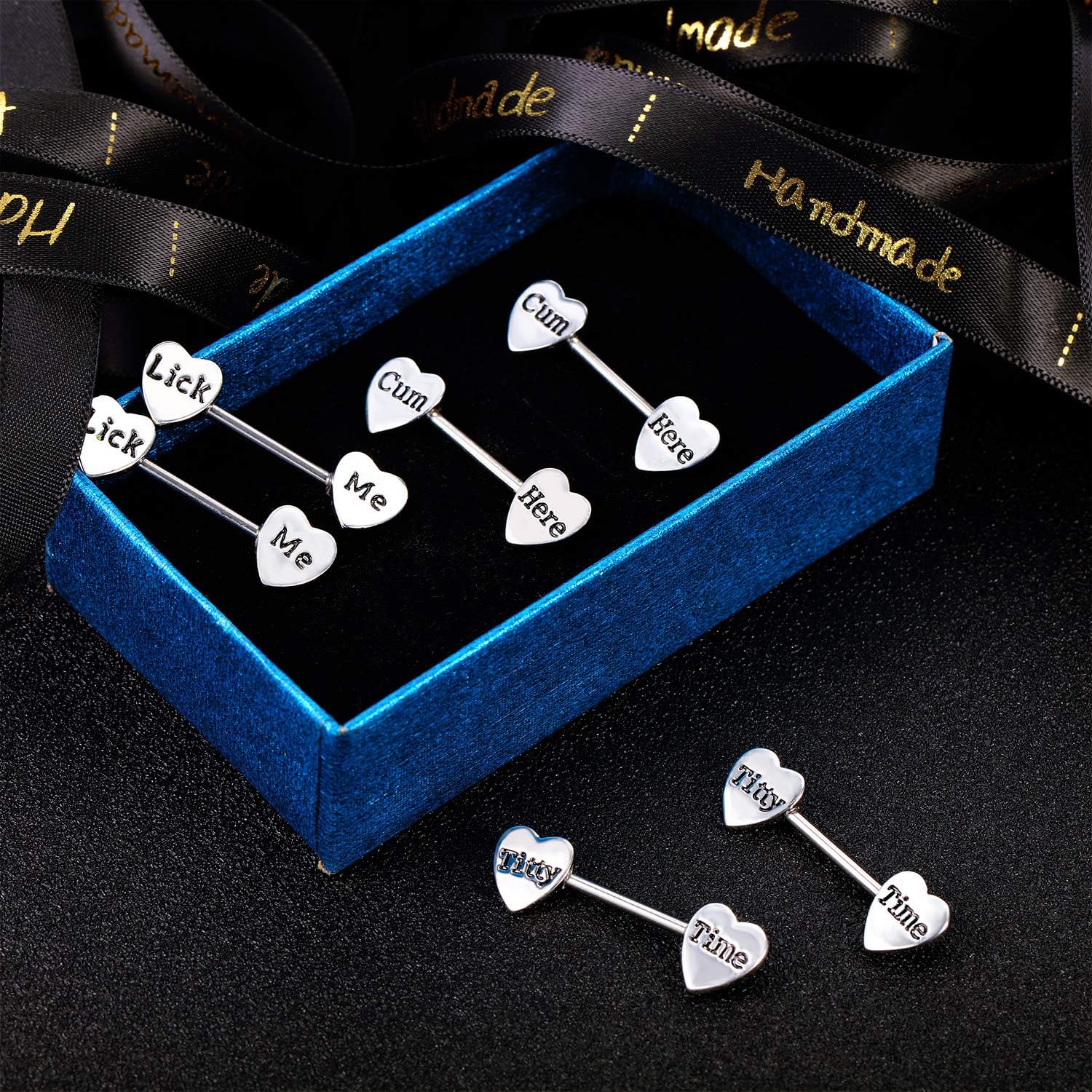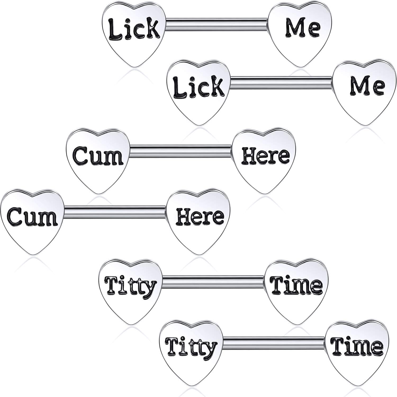 Chic heart shape: these stainless steel piercing are designed in adorable heart shape, engraved with sweet words as picture shown, shining and elegant in appearance, you can be more charming with these cute barbells
