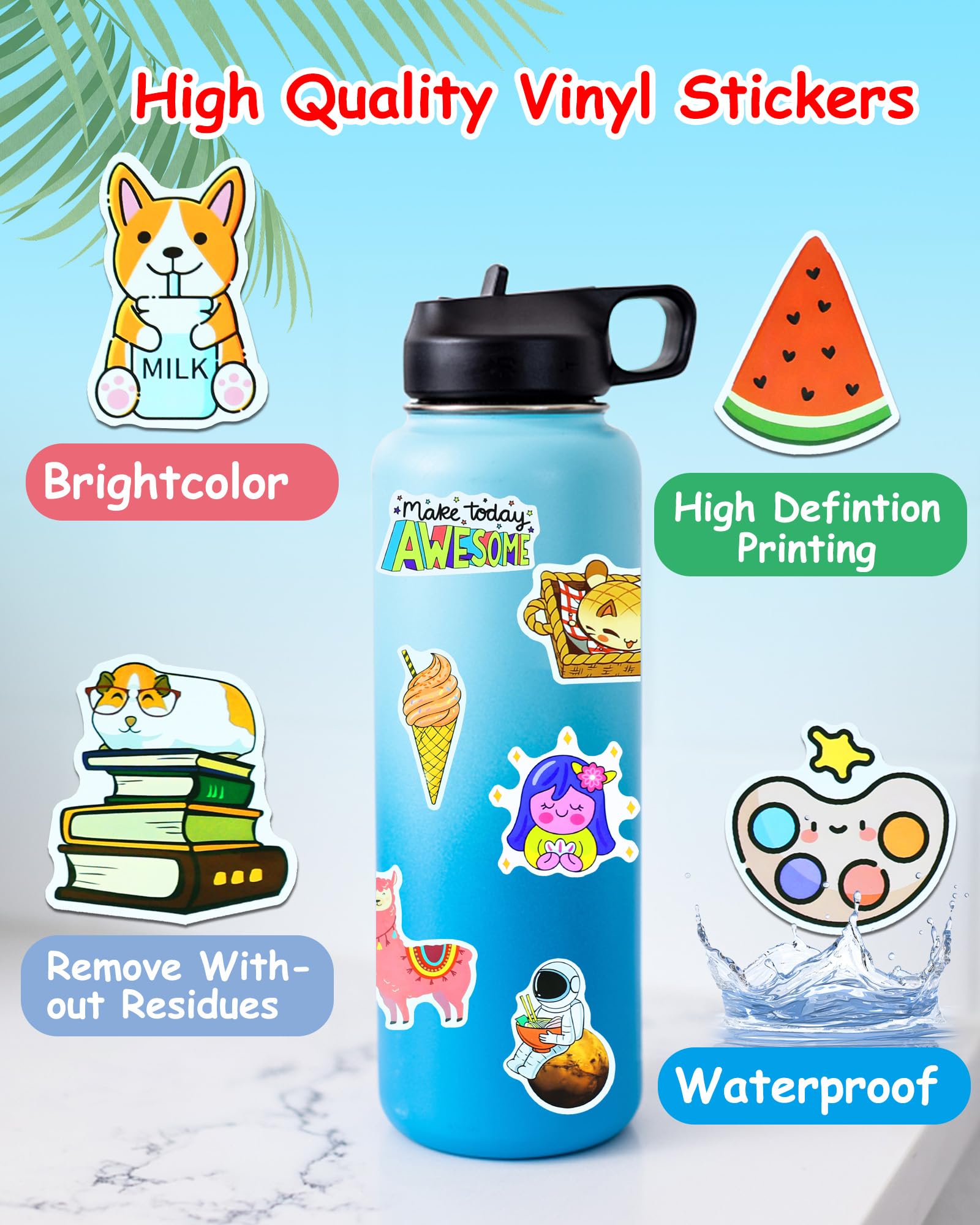 High-Definition Stickers: Our stickers for students feature high-definition printing for clear, precise designs. These cute waterproof stickers for adults/kids are perfectly cut and can be used directly, with high quality that allows for multiple applications without residue.
