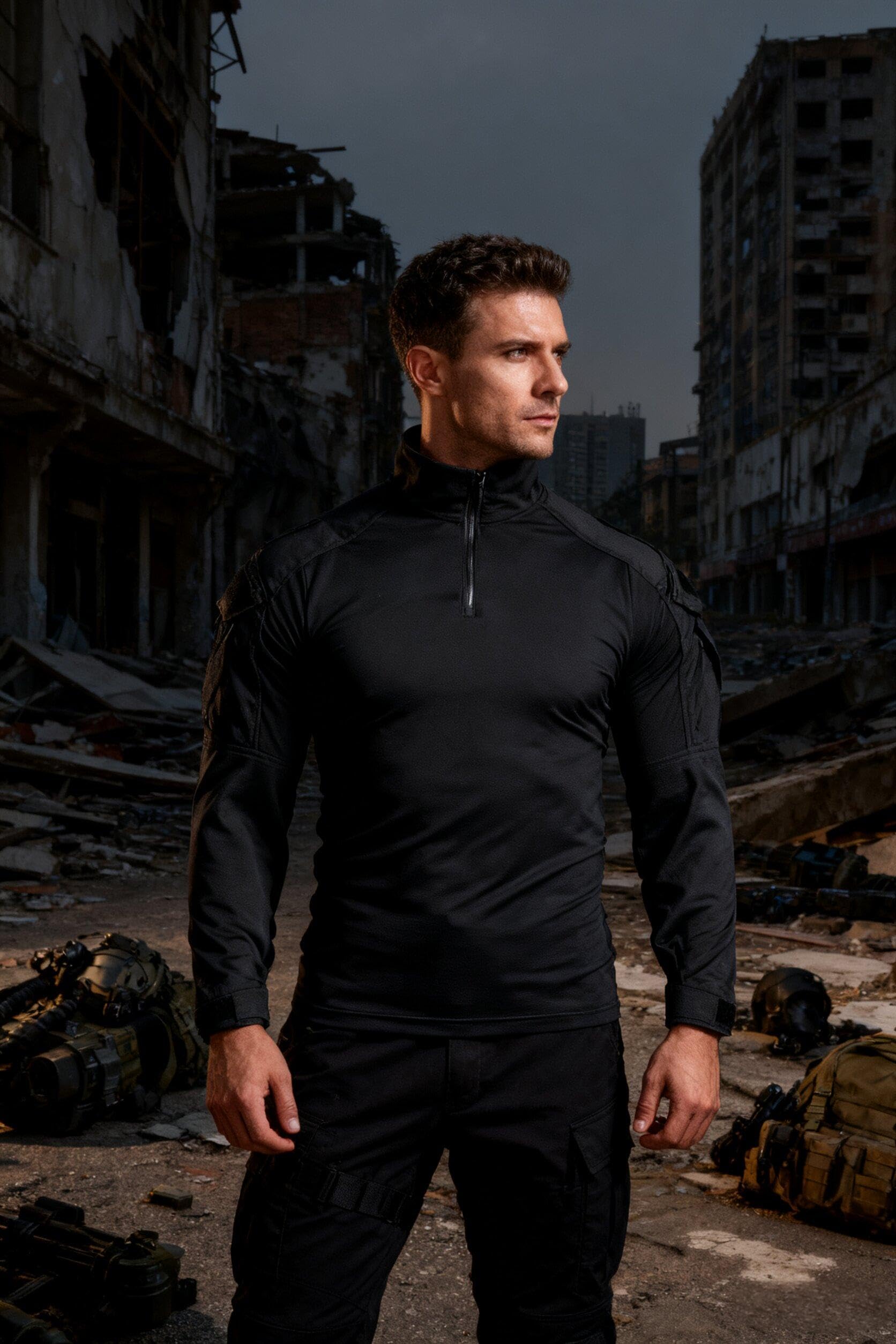 Design of airsoft shirt: The combat shirts for men features with stand-up collar with YCC zipper,underarm three-dimensional cutting design, thickened elbows. The tightness of the cuffs with hook and loop can be adjusted. Standing collar protects the neck and keeps it warm from the natural interference of the cold