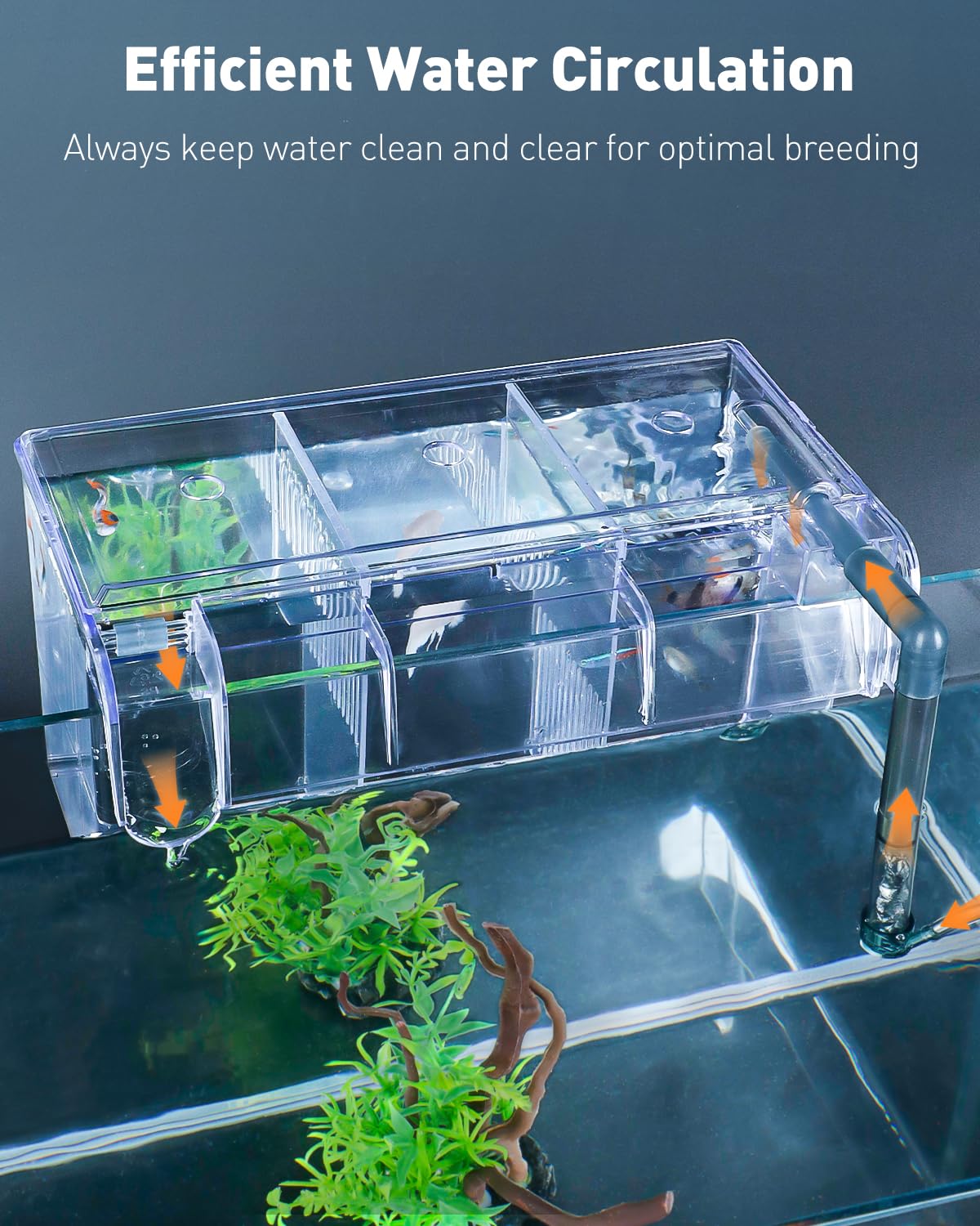 Wall-Mounted Design: The fish breeder box can be instantly hung on any tank edge over 5 mm thick. No more taking up valuable aquarium space. Handy hooks allow quick removal for convenient cleaning and maintenance
