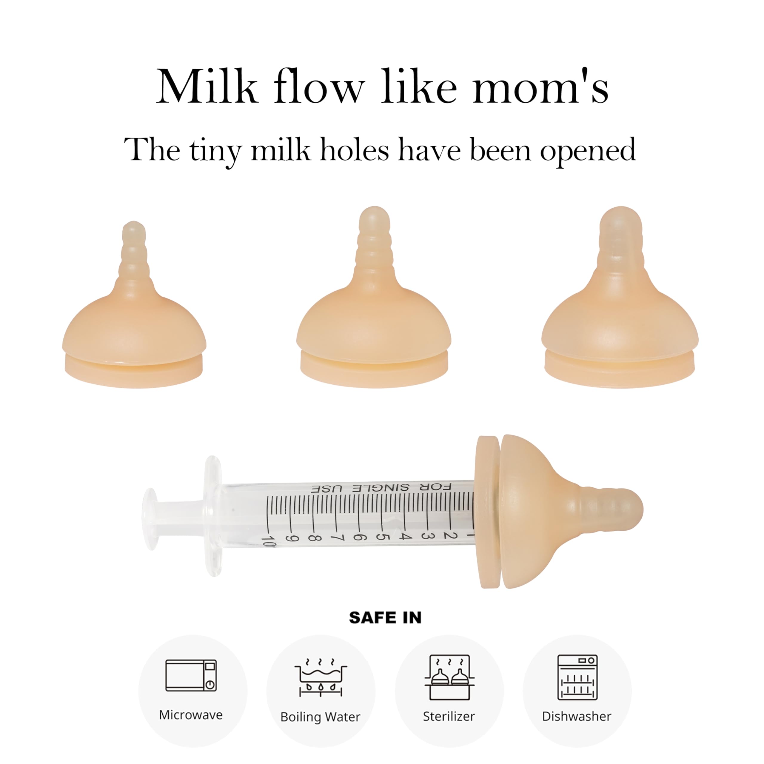 Product includes:1*S Sizes Nipple+1*M Sizes Nipple+1*M+ Sizes Nipple+1*L Sizes Nipple+3*10ml Syringe+2*20ml Syringe