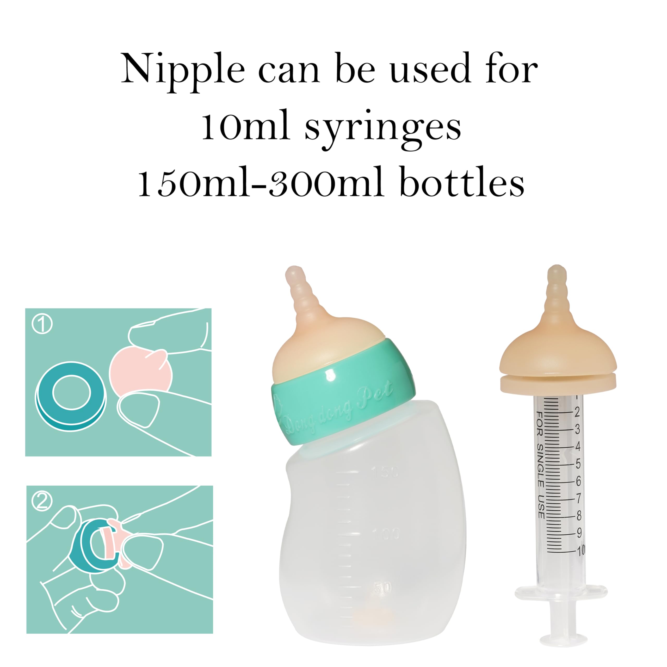 Four different sizes of silicone nipples can cover different stages of breastfeeding, from birth to weaning. It is suitable for puppy.The nipple can be used with 10ml syringes and is also suitable for 150-300ml Doggiema bottles