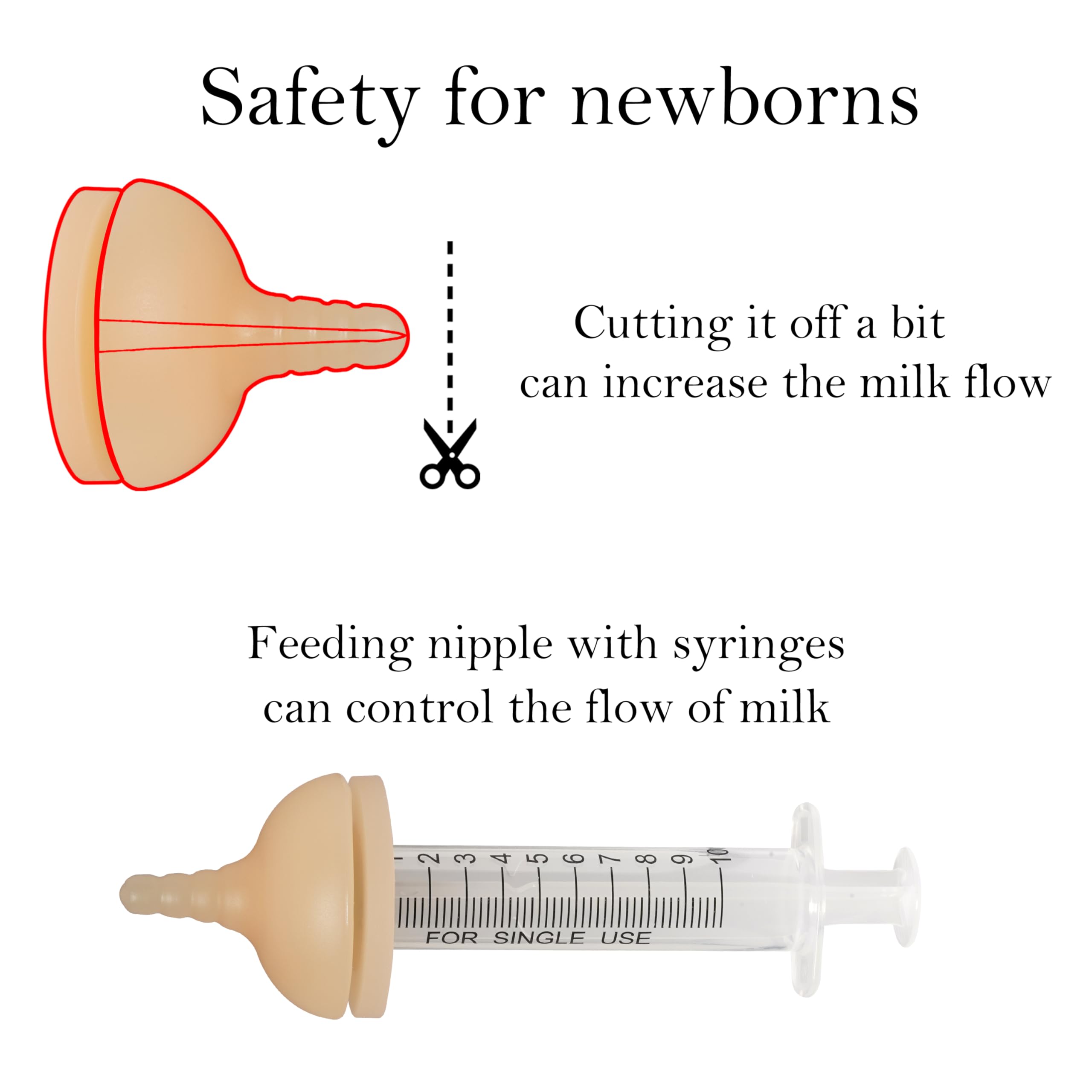 Easy to use and clean: Nipples can be steam disinfected and are also easy to clean and reuse. For 30 day old babies, they may bite off their nipples and there is a risk of accidental ingestion. Please use a 20ml syringe for feeding (without a nipple) to avoid this situation