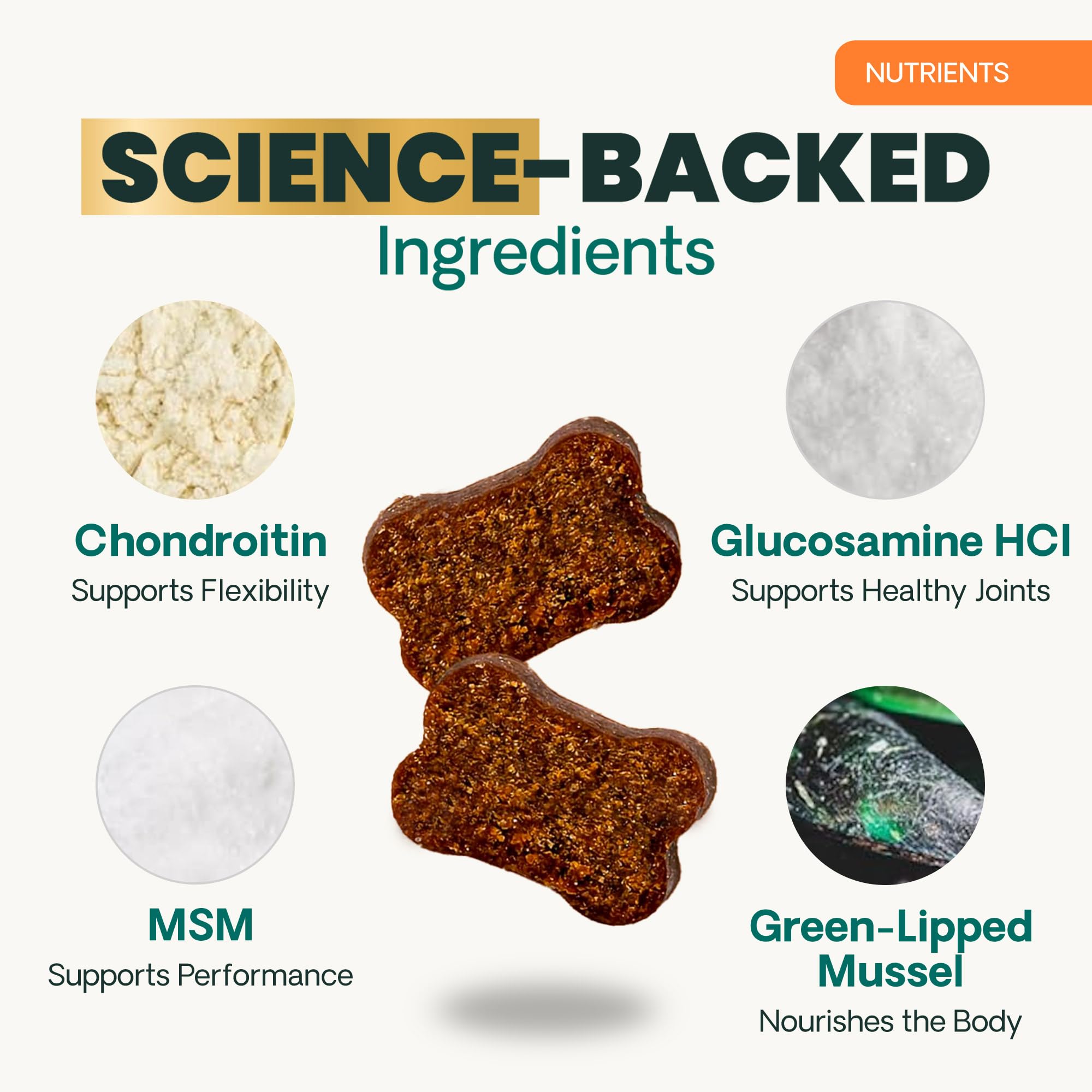 Delicious Chicken-Liver Flavor: These glucosamine and green-lipped mussel joint chews are like a treat for dogs of all ages, breeds, and sizes