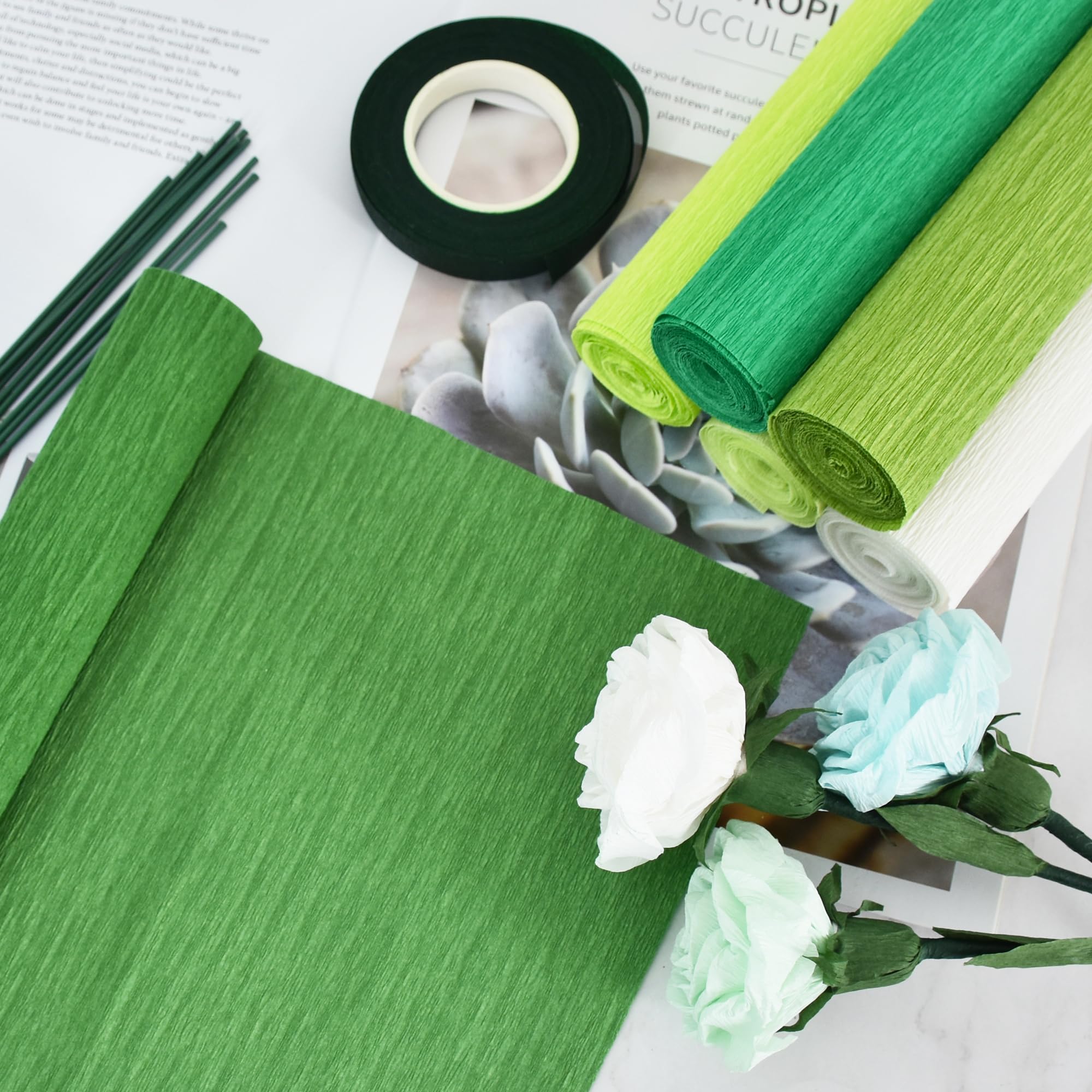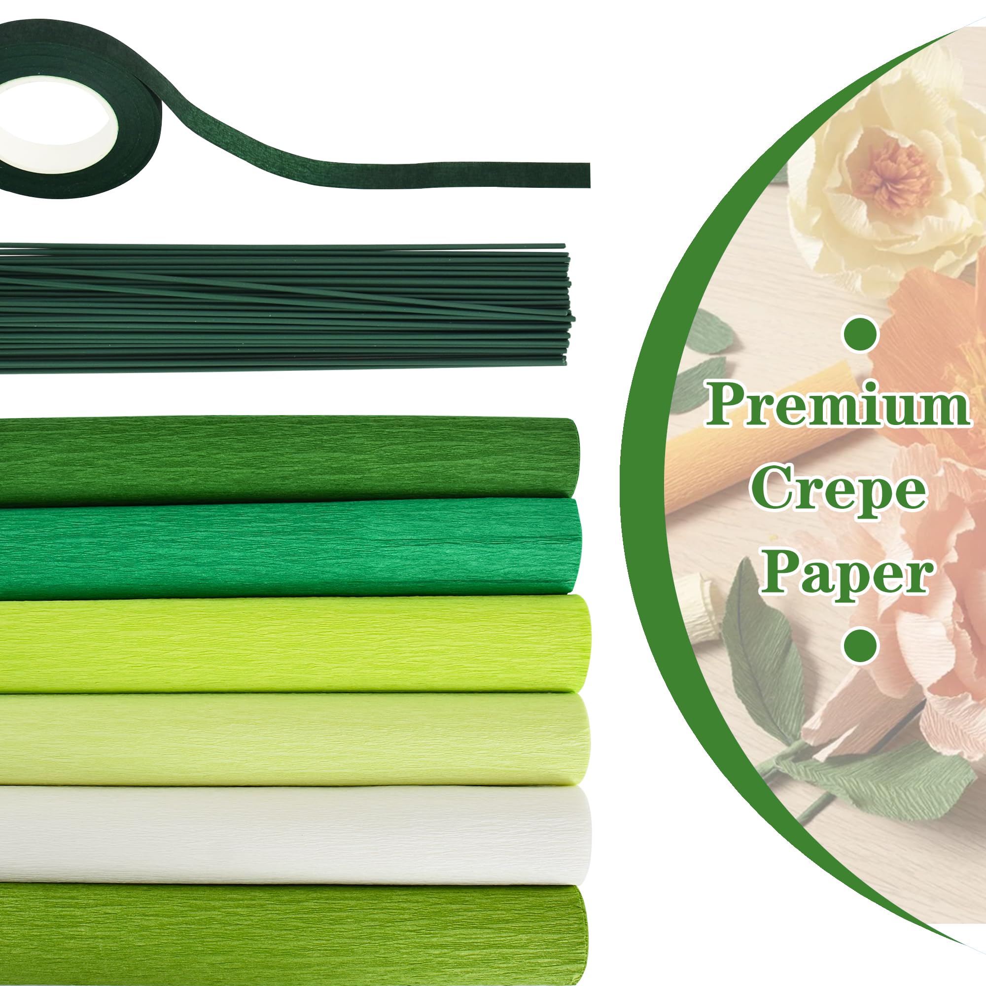 【Quality】The crepe paper is made of high-quality paper, which is not easy to tear or fade, and is soft enough, so you can also cut them into the size or shape you want. Green iron wire is flexible and can be easily bent into various shapes.