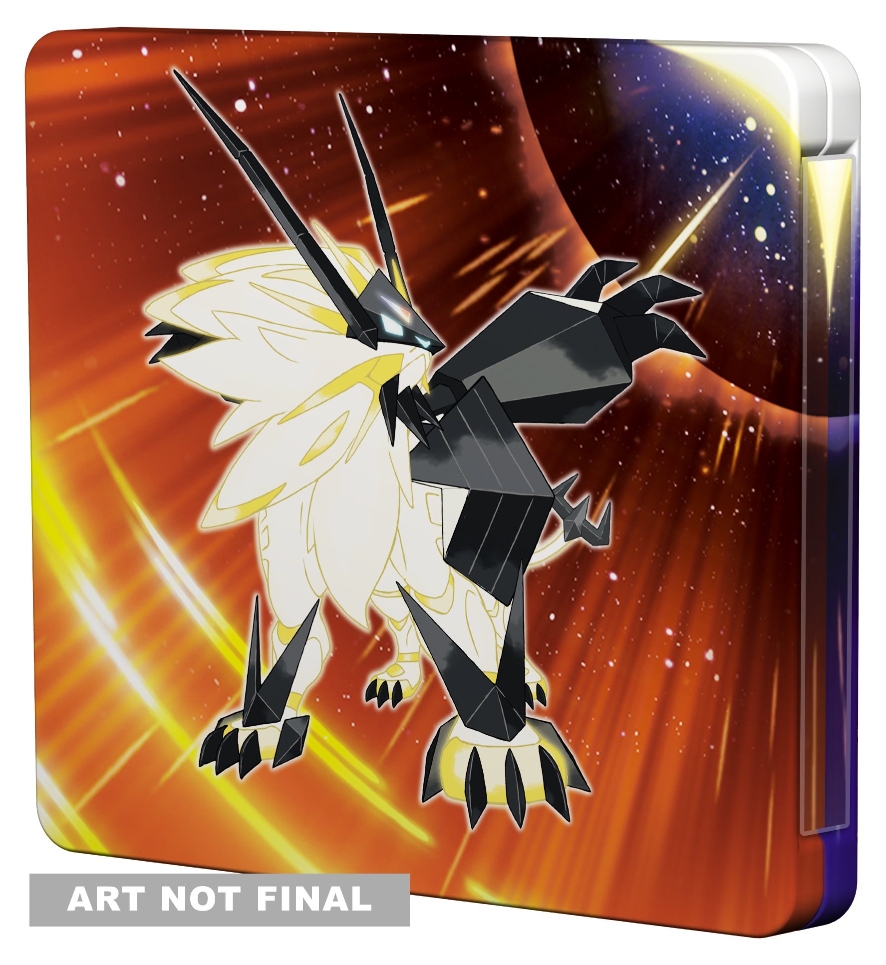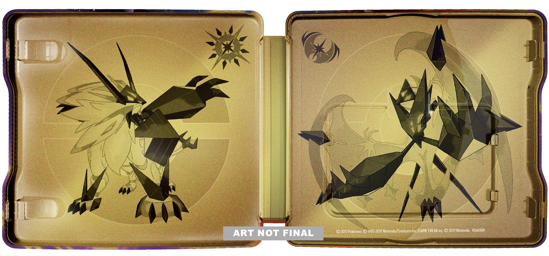 The outer art features legendary Pokemon, Solgaleo and Lunala