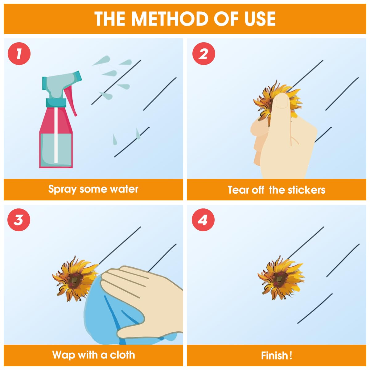 Easy to Use -- Keep smooth surface clean, tear off the back, install stickers with gentle press. You will see sticky clings would firmly attached.