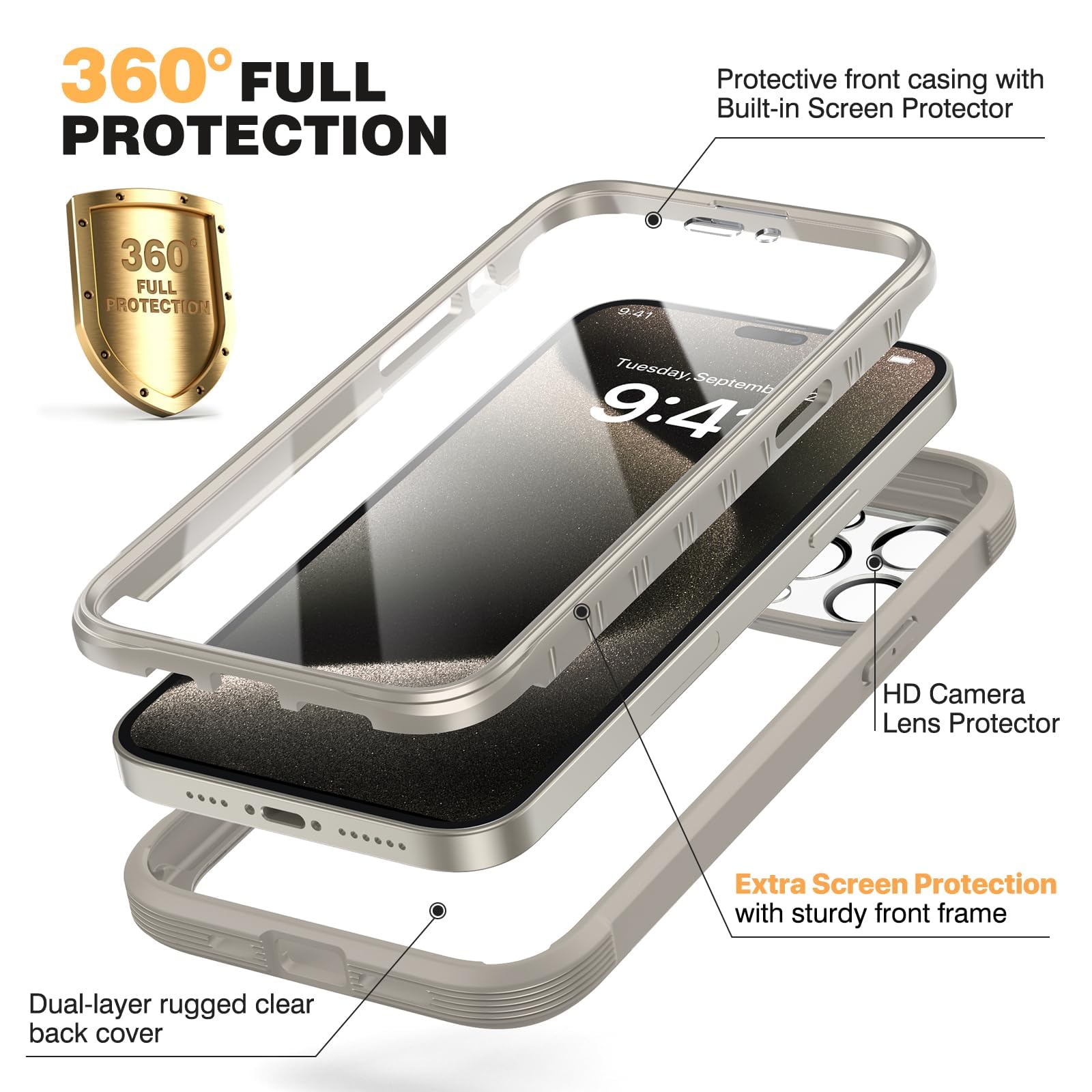 [360-Degree All-Around Drop Protection] Diaclara designed for iPhone 15 Pro waterproof case features a double-layer TPU shock-absorbing material and reinforced corners, capable of withstanding drops from 10 feet, effectively protecting against accidental impacts. Its full-coverage design ensures worry-free use during daily activities, outdoor cycling, hiking, and other high-intensity sports.