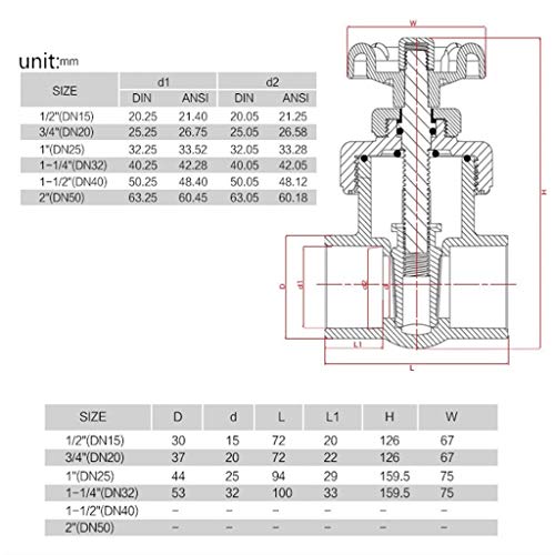 Gate valve size: Inner Diameter 20mm 25mm 32mm 40mm 50mm 63mm; 1/2" 3/4" 1" 1-1/4" 1-1/2" 2"; DN15 DN20 DN25 DN32 DN40 DN50.
