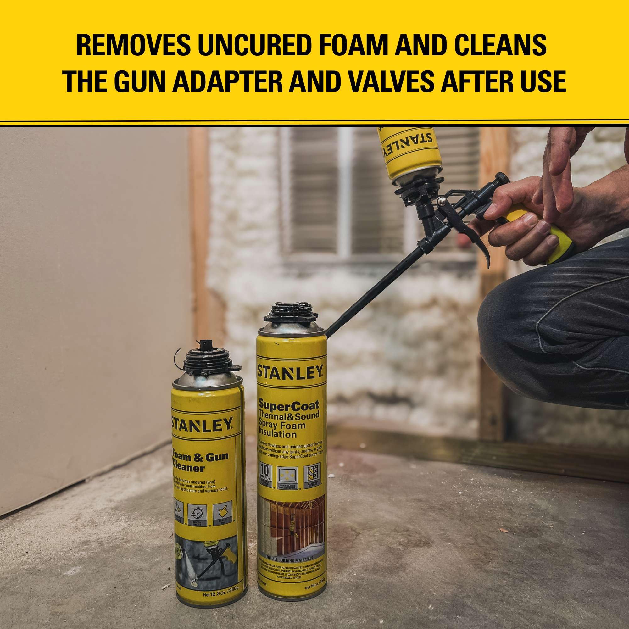 Effortless Foam Removal: Stanley Foam Gun Cleaner is a potent solvent-based solution designed for spray foam insulation guns, ensuring easy removal of uncured foam and a clean workspace.