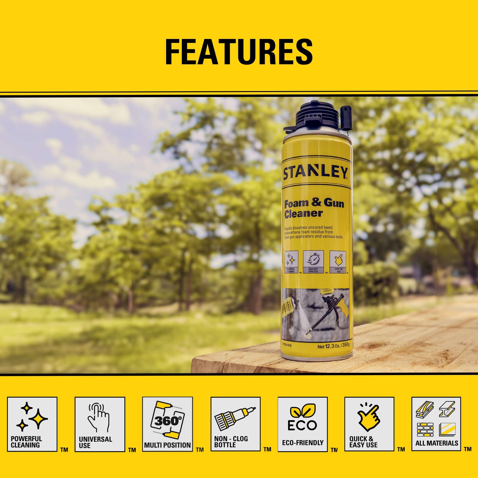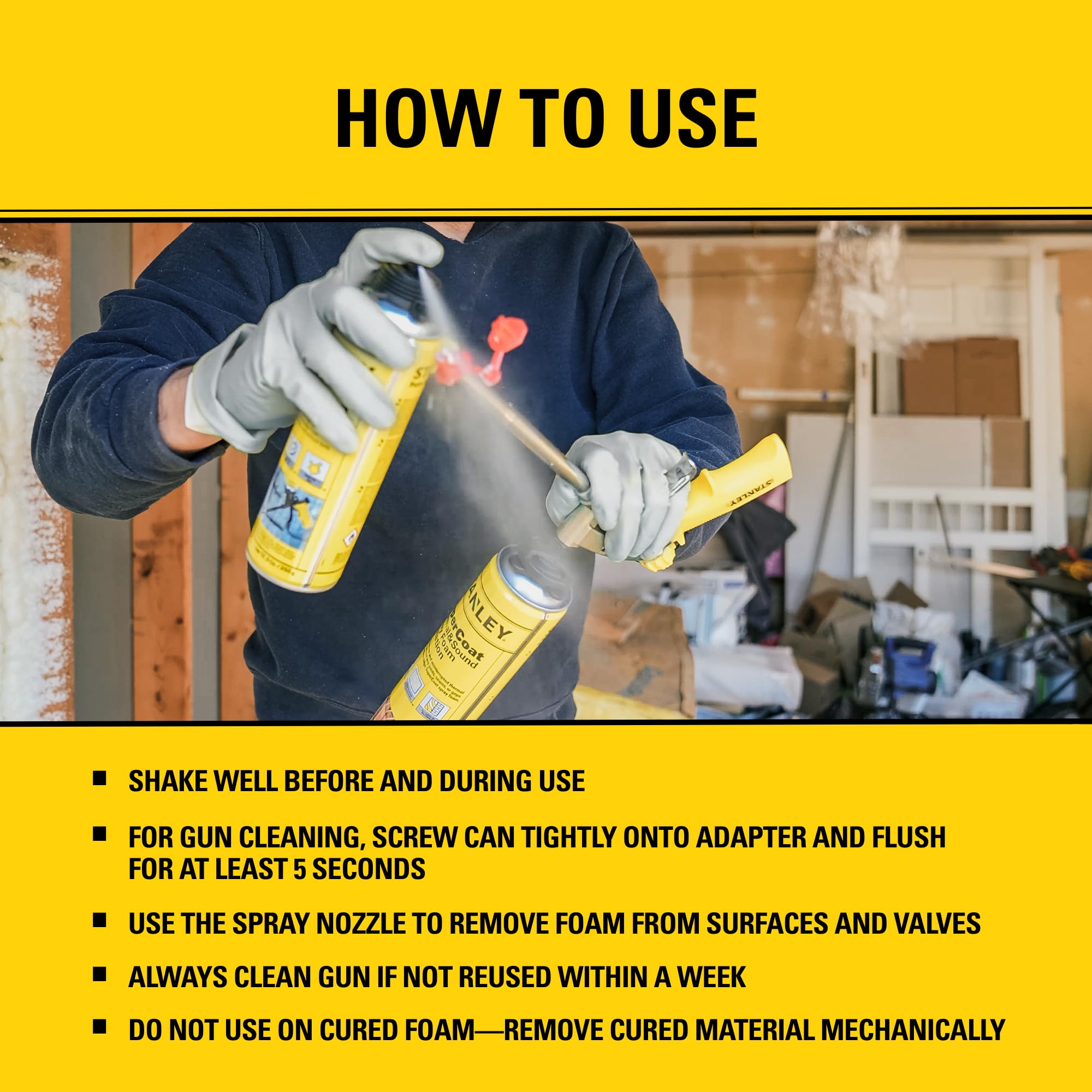 Caution for Sensitive Surfaces: While highly effective, Stanley foam gun cleaner is a strong solvent and may damage sensitive surfaces. It cannot be used to clean cured foam.