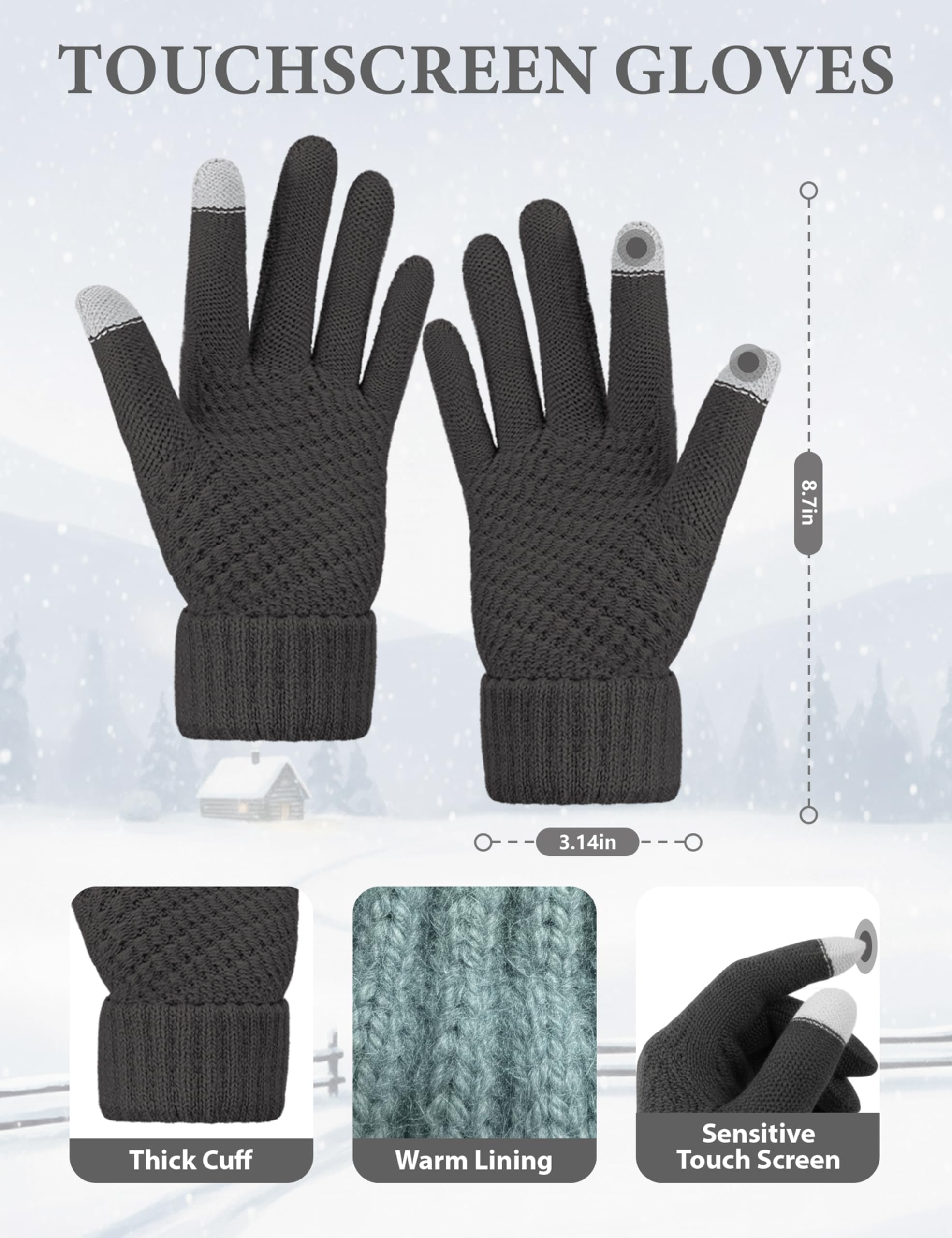 Womens Gifts - The classic-styled beanie and glove set comes in a variety of colors, allowing you to choose one that matches your outfit perfectly. This dark gray hat set is great gift for women in winter.