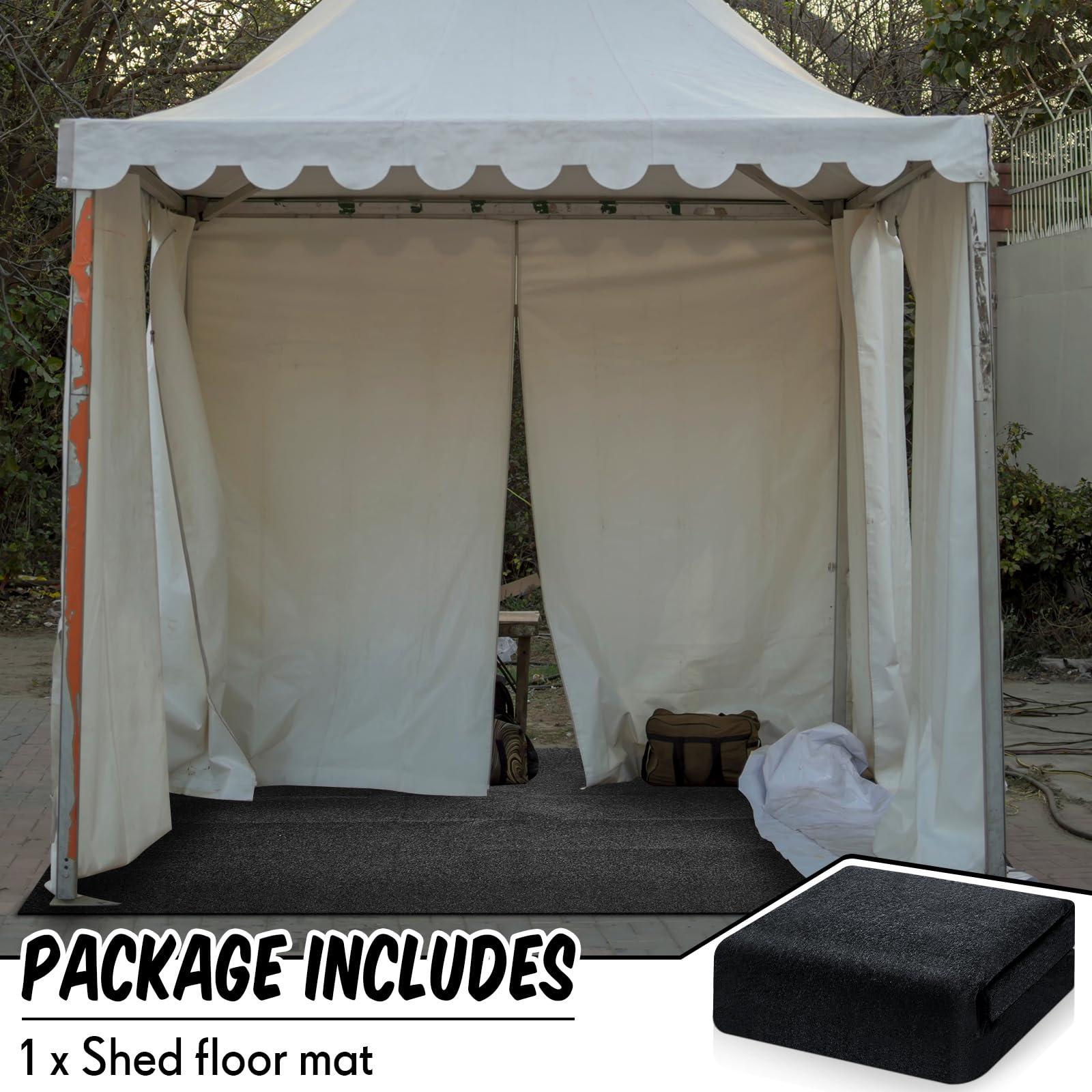 Effortless Usage: unfold the patio floor mat, lay it flat under the shed, and it's ready to protect your storage shed floor from scratches and damage; The portable shed mat comes with a non slip backing providing added cushioning, making it a breeze to use; And the storage sheds mat can be cut into proper size to meet your different needs, contributing to its convenience and practicability
