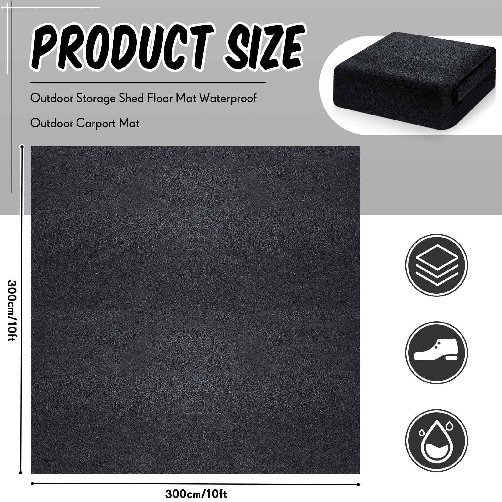 Sturdy Protection with the Shed Floor Mat: you will receive 1 piece of storage shed floor mat, which measures about 10 x10 ft/ 300 x 300 cm, offering an ample coverage for your outdoor shed flooring, and you can also cut it into proper size to meet your needs; Which can not only prevent the storage shed floor from being eroded by damp ground, wear or tear, but also help keep your shed clean and tidy, bringing much convenience to you