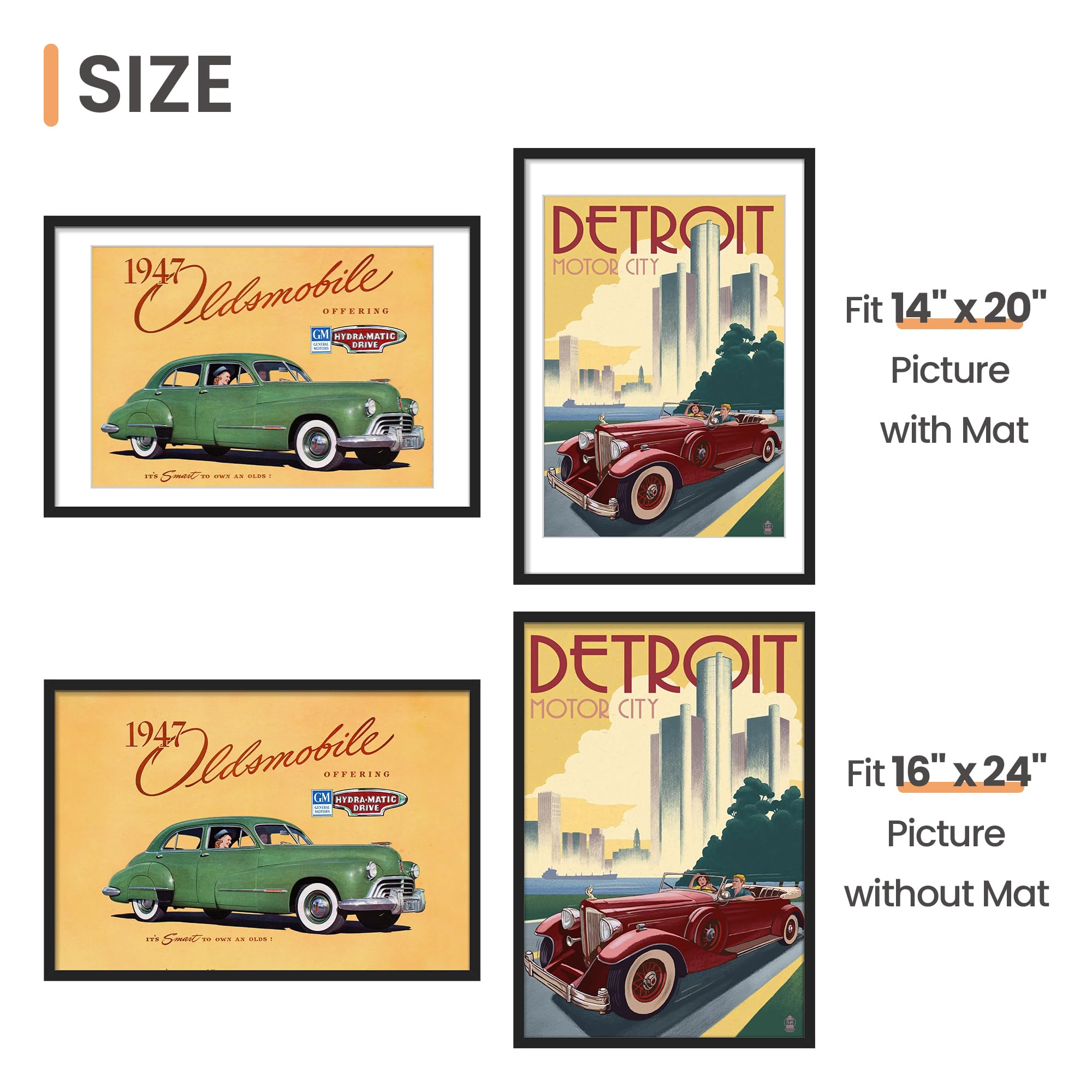 DOUBLE SIZE DESIGN: Black 16x24 inch picture frame perfects for Pictures 14x20 with Mat or 16x24 Without Mat. The display size will be 0.5inch smaller than the photo size to better stable the photo and prevent it from falling off.