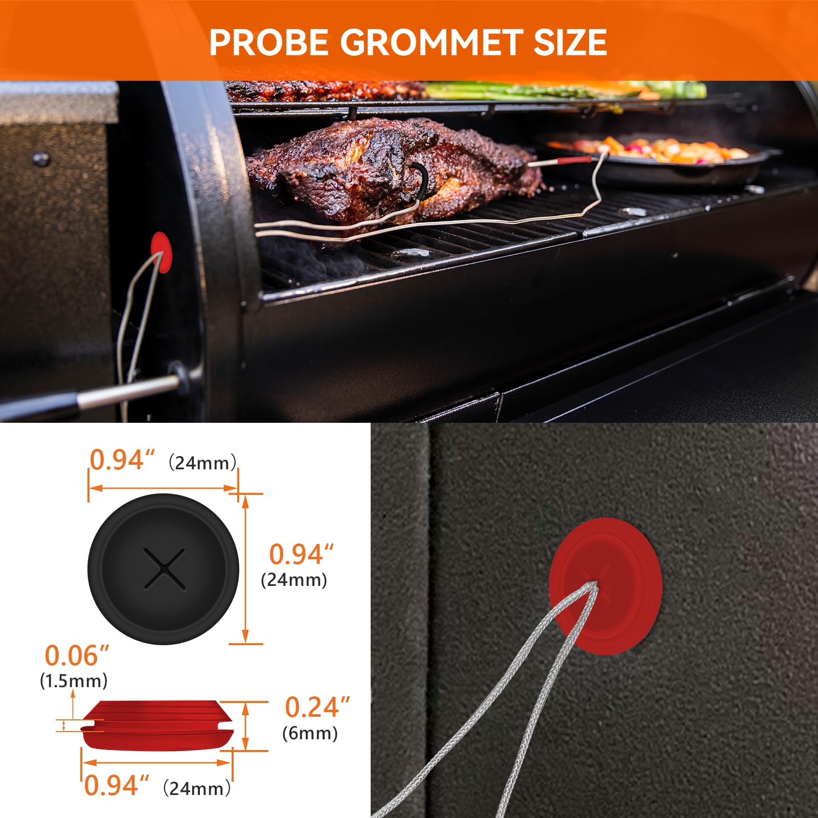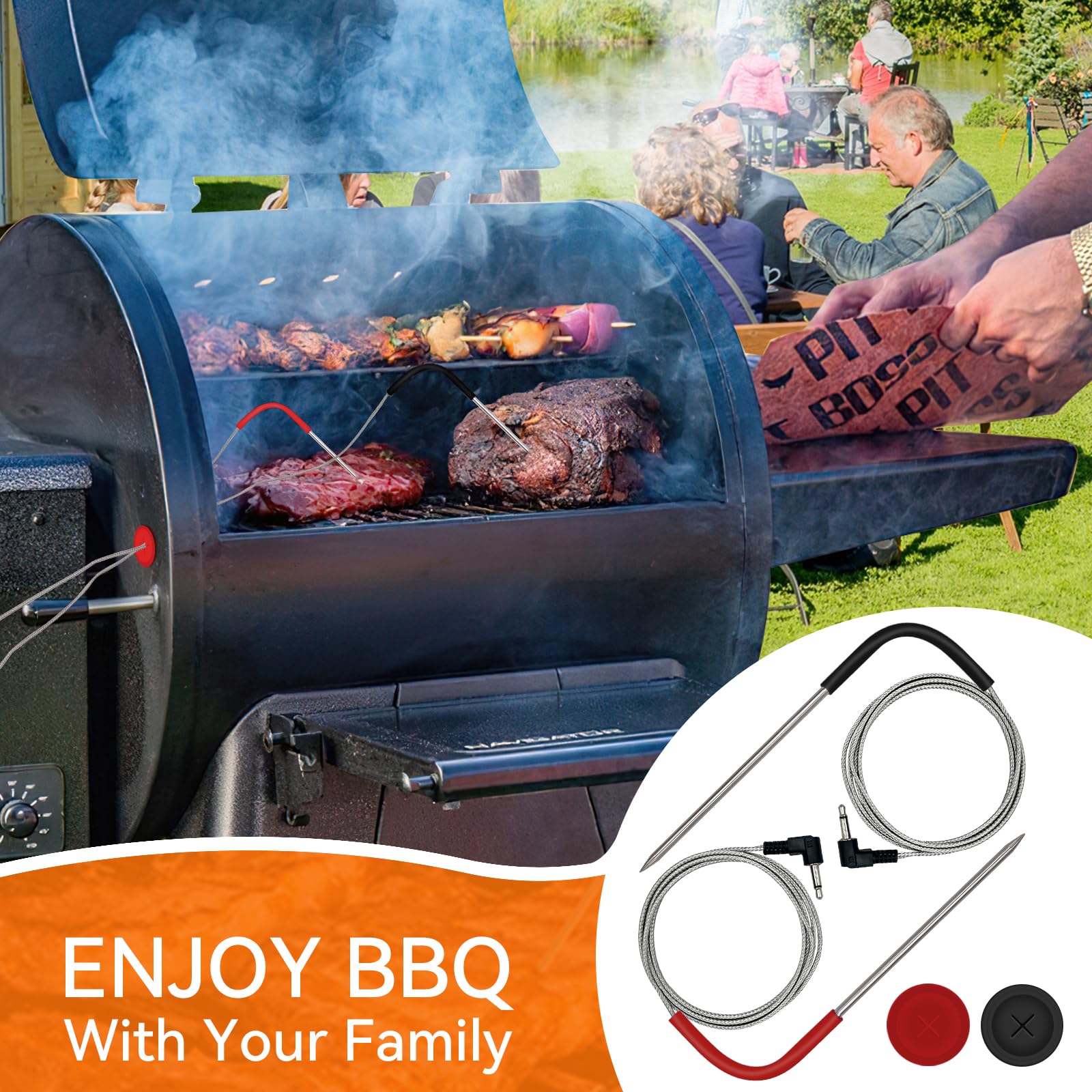 2-PACK MEAT PROBR FOR PIT BOSS : Package contains 2 replacement meat probes and 2 probe grommet covers. The grommets attach to the grill and stabilize the meat pins by passing them through the grommets without worrying about the cable fraying
