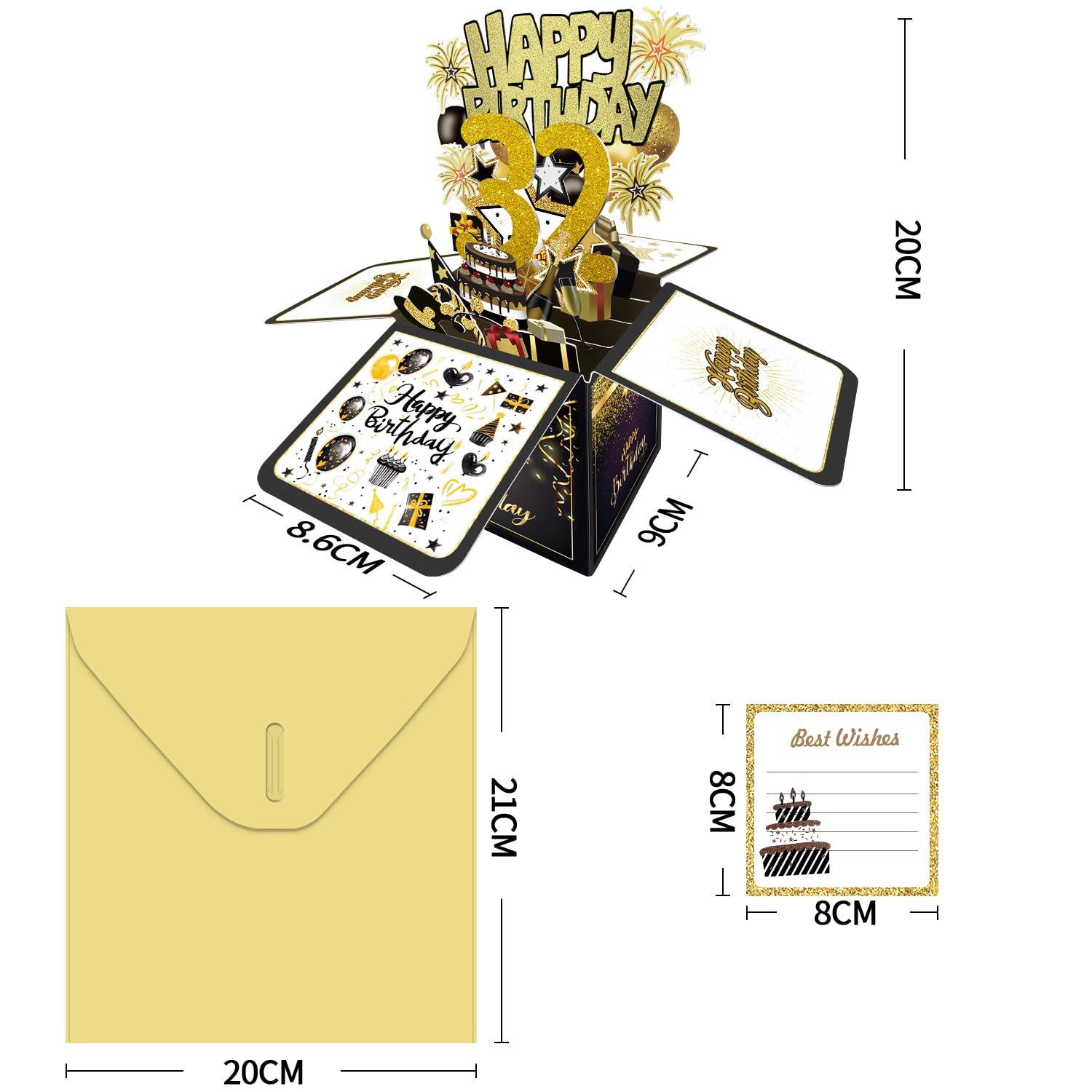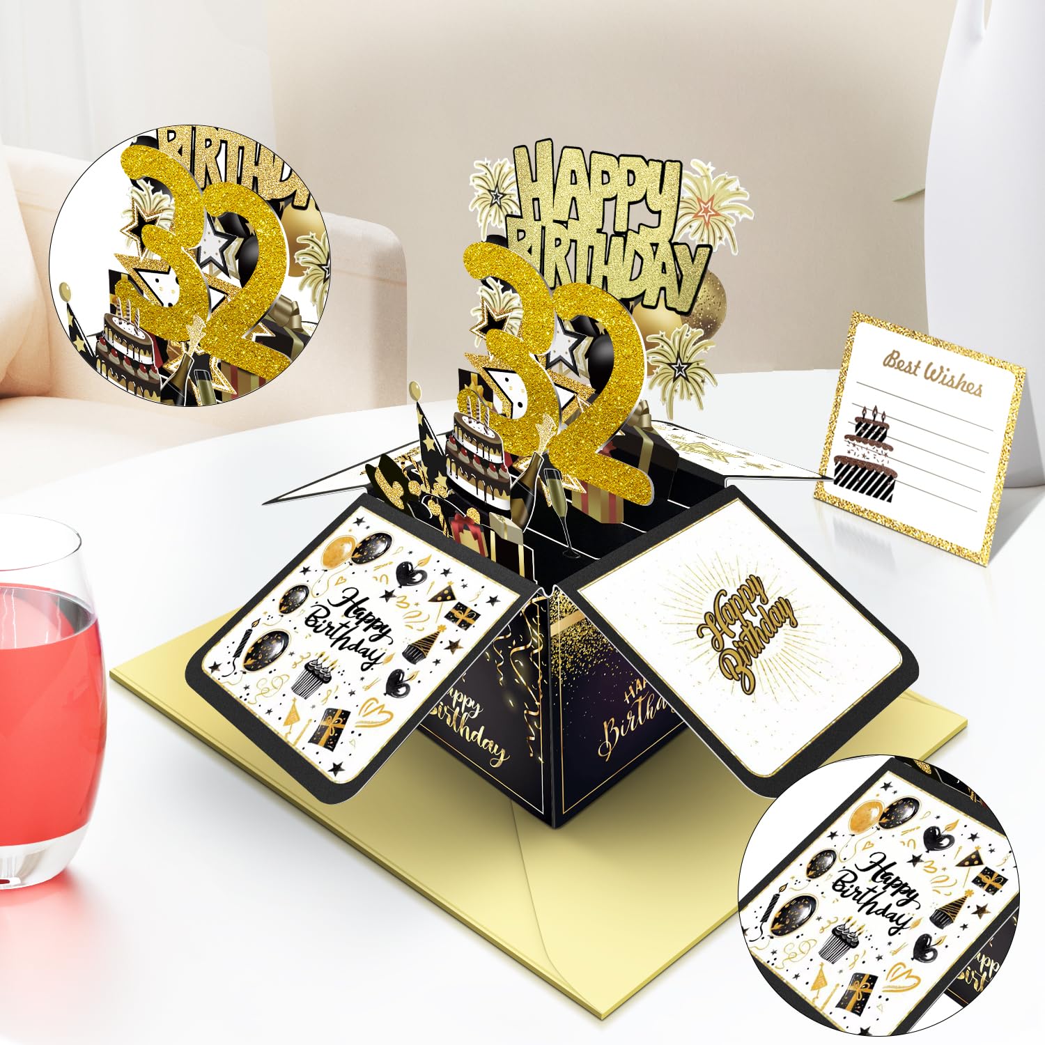 【32nd Birthday Gifts】This 3D birthday card is perfect for women, men, wife, husband, her, him, friends, and more. Each card serves as a thoughtful greeting, stylish decoration, photo prop, or party accessory.