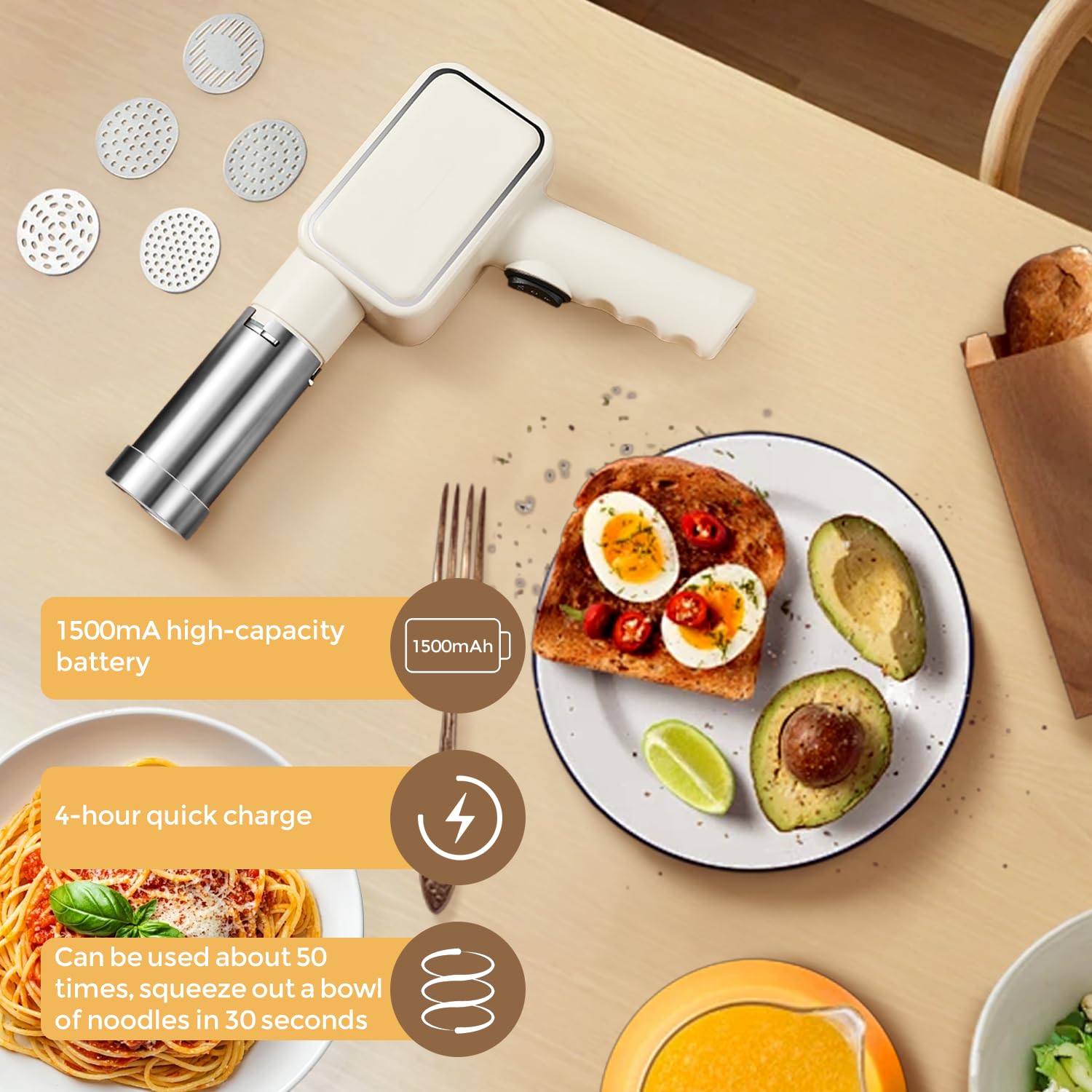 High-Efficiency Electric Pasta Maker Machine: The electric noodle maker is equipped with a Type-C fast charging port and a 1500mAh high-capacity battery. It can be fully charged in 4 hours to start high-efficiency noodle making mode. A single charge can make 100 bowls of noodles, easily handling large gatherings such as family dinners and parties with friends.
