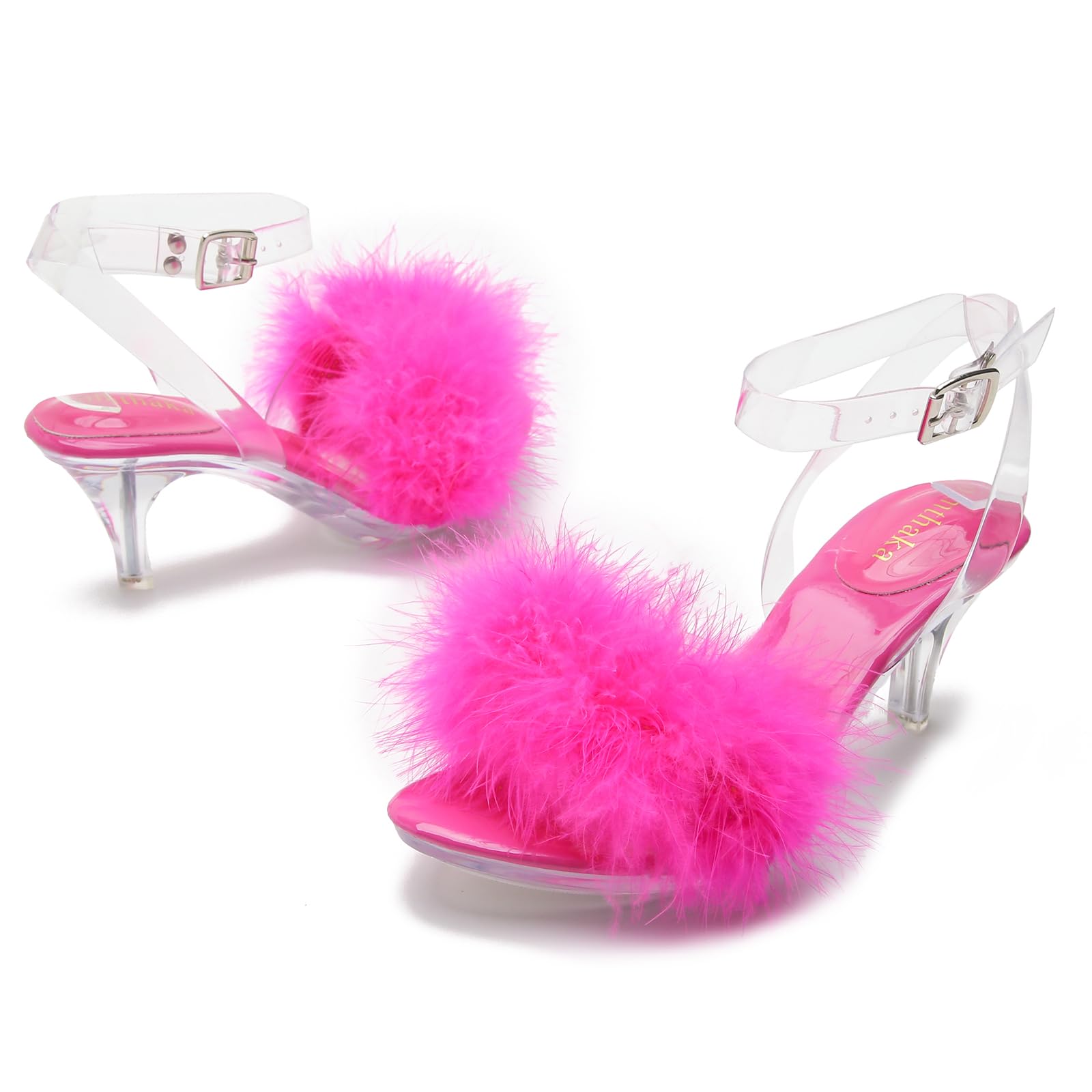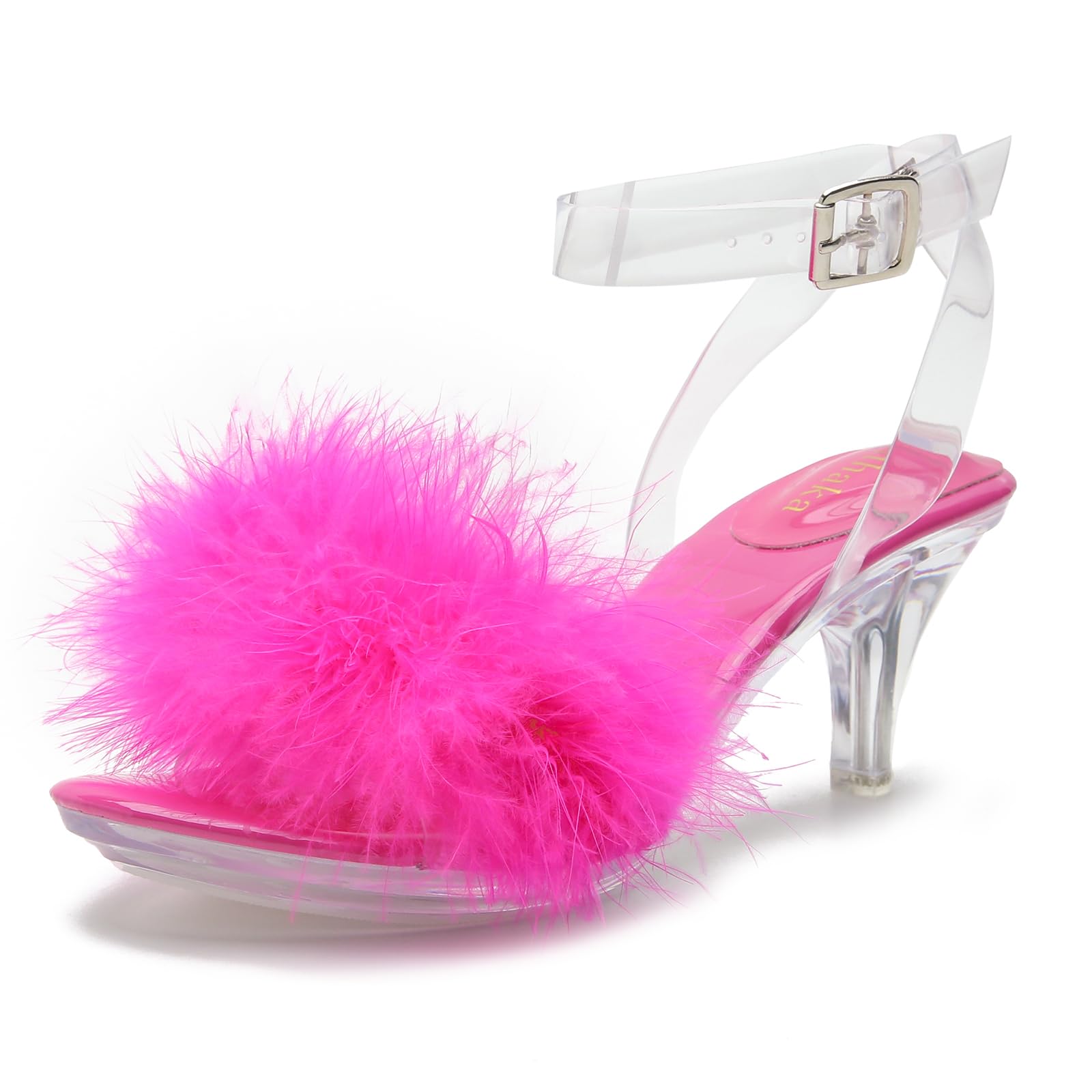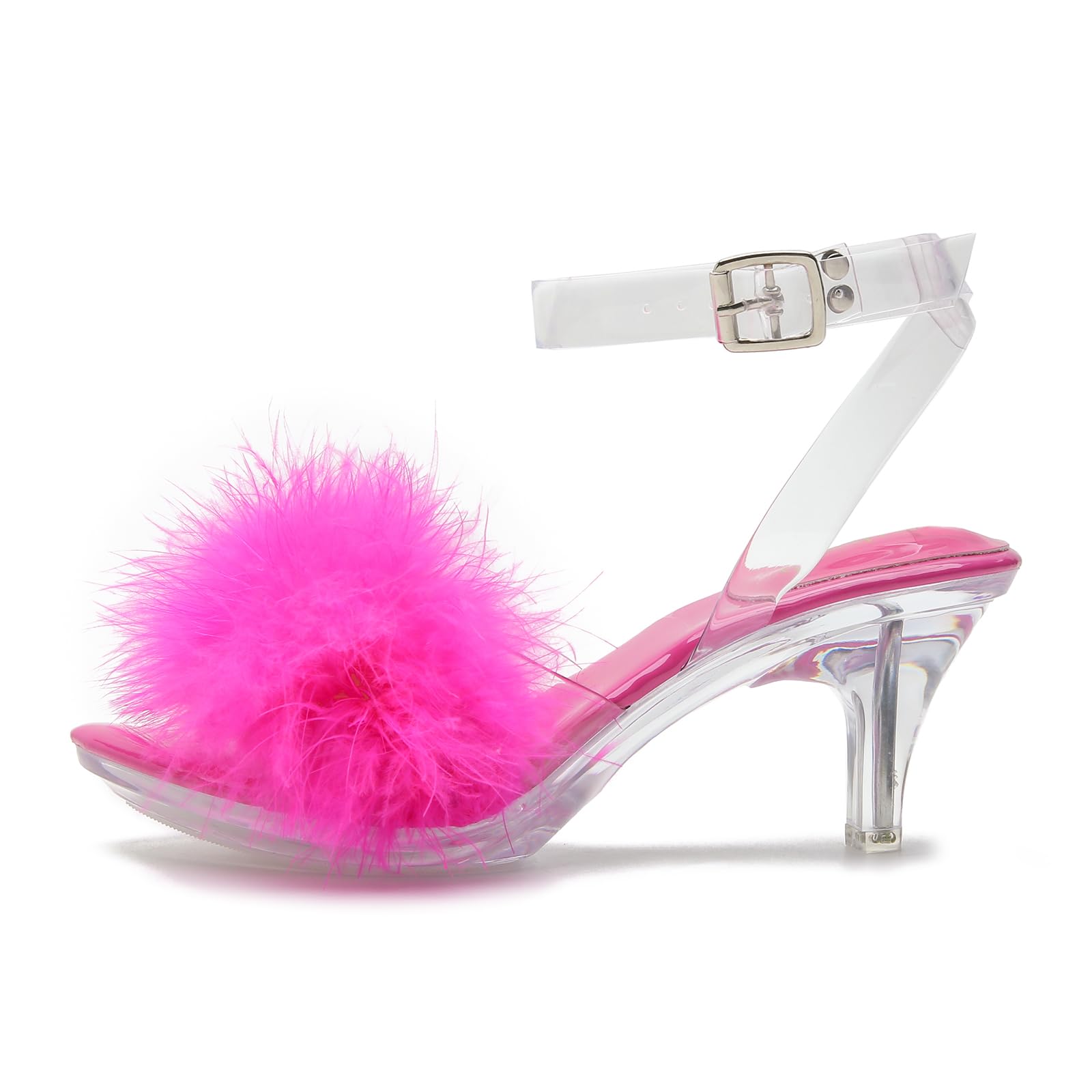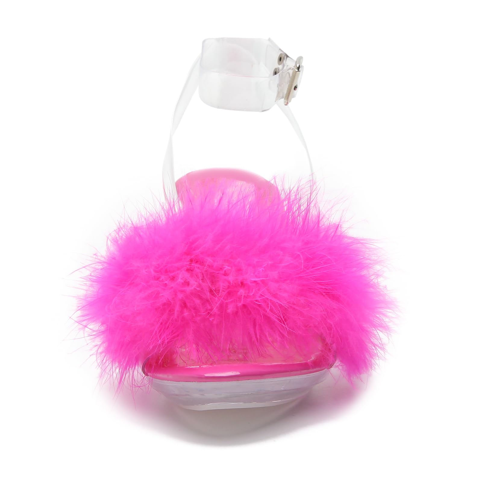 High Heels Sandals:Sexy Stilettos heels,Perfect heel height that looks sexy but still definitely comfortable to stand and walk in.TPU transparent upper,fluffy feather clear sandals sexy and cute,the candy colors adds a style and makes you look unique