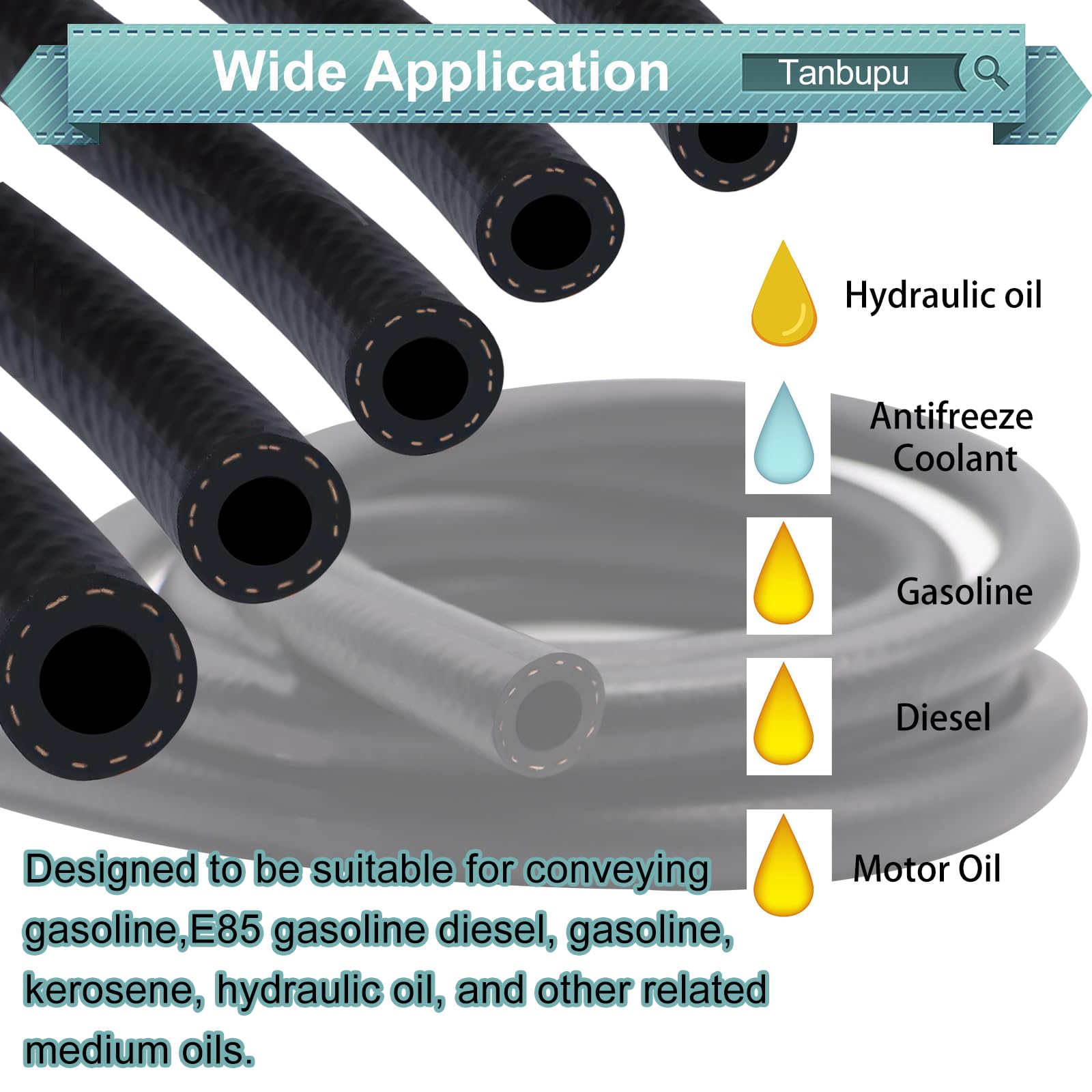 6.6Ft Rubber fuel line kit:Triple-Layer Braided NBR Construction Inner oil-resistant NBR rubber + polyester fiber reinforcement + abrasion-proof outer layer. Exceeds SAE J30R7 specs for 300PSI working pressure and 1160PSI burst resistance (-40°F to 257°F/-40°C to 125°C)