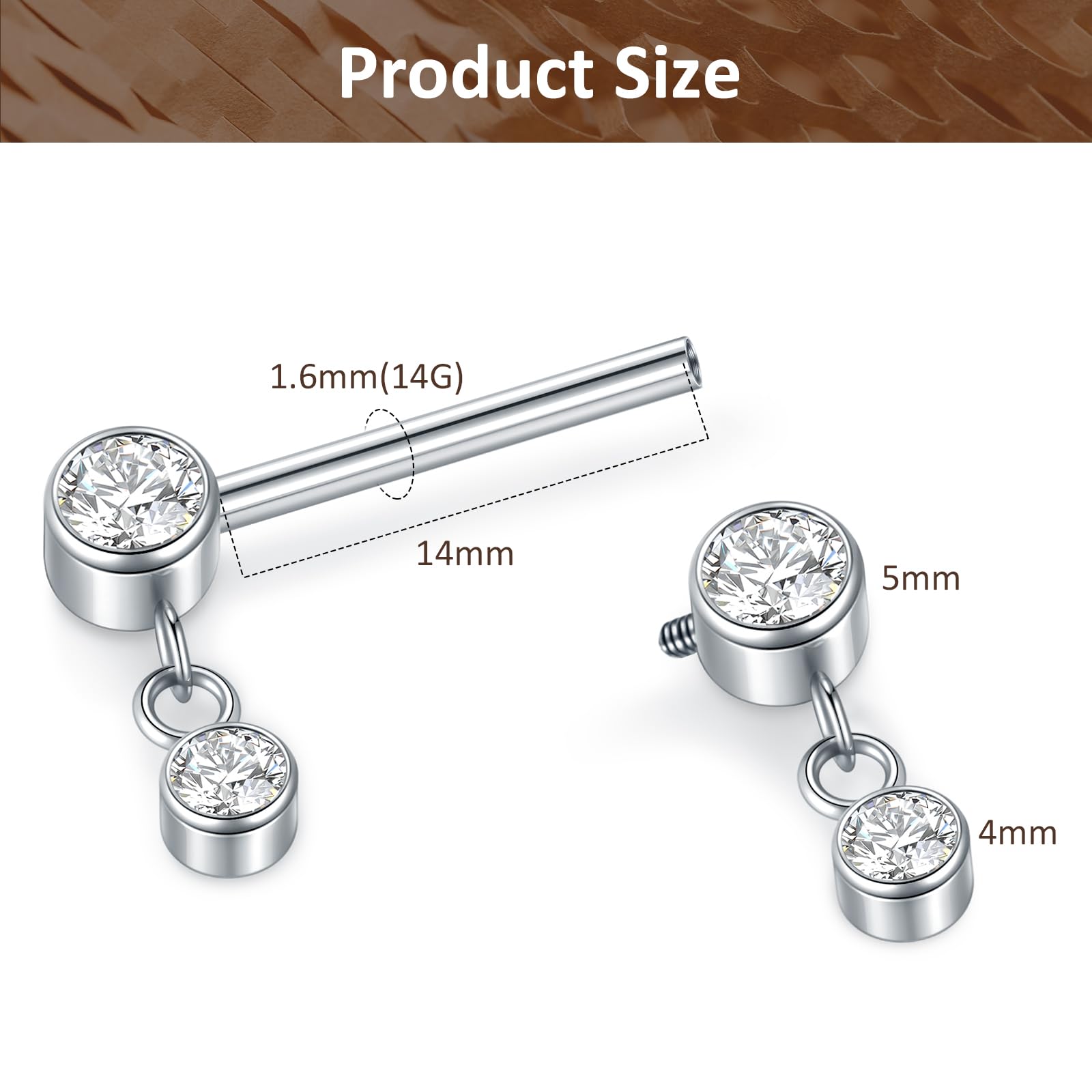 14g Nipple Barbells: Bar Thickness: 1.6mm, bar length : 14mm. Please feel free to contact us by email if you need any assistance on choosing the right size for your nipple piercings