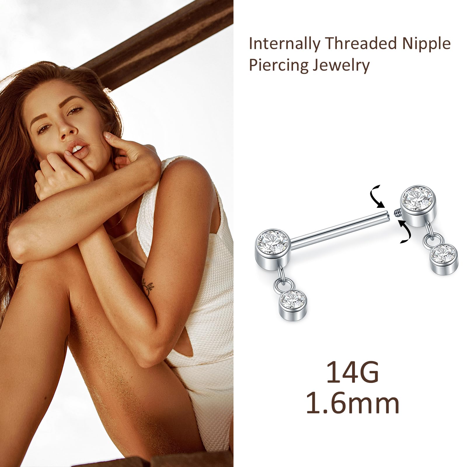 Internally Threaded Design: This titanium nipple jewelry is easy to use. Top side can be screwed off, firm and easy to open and close, never fall off. Ideal for women's nipple piercing jewelry