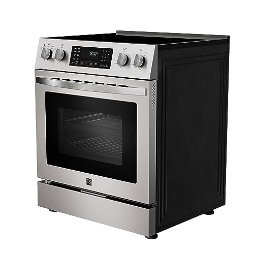 Take your kitchen to the next level with the Kenmore Front Control Electric Range. Functional and attractive, this freestanding electric range enhances your cooking experience with its front-control design, 5 cooktop burners, 2 oven racks, and bright halogen light while its sleek and modern stainless steel finish complements any kitchen. The easy-to-use controls feature accurate incremental adjustments and advanced cooking and self-cleaning options with multiple settings such as Delay Start, Keep Warm, Broil, Self Clean and Steam Clean. Featuring 5 cooktop burners, this electric range oven maximizes your cooking flexibility and control so you can align the burner to the right task and boil water, sauté veggies, and simmer sauce all at the same time. True Convection utilizes a fan and third heating element to preheat quickly and surround food with heated air for a consistent, even performance on each rack. The Air Fry setting with a basket produces hot circulating air to create your favorite fried foods with a crispy outside and tender inside without the oil or mess, and the 2 powerful 3,000-watt Turbo Boil elements provide fast boiling and stir-frying and searing options to get that perfect sizzle on everything from steaks and burgers to vegetables and fish.