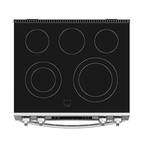 FRONT CONTROL ELECTRIC RANGE: Enhances your cooking experience with its convenient front-control design, 7 cooktop power options, 2 oven racks, and bright halogen light while its sleek stainless steel finish complements any kitchen