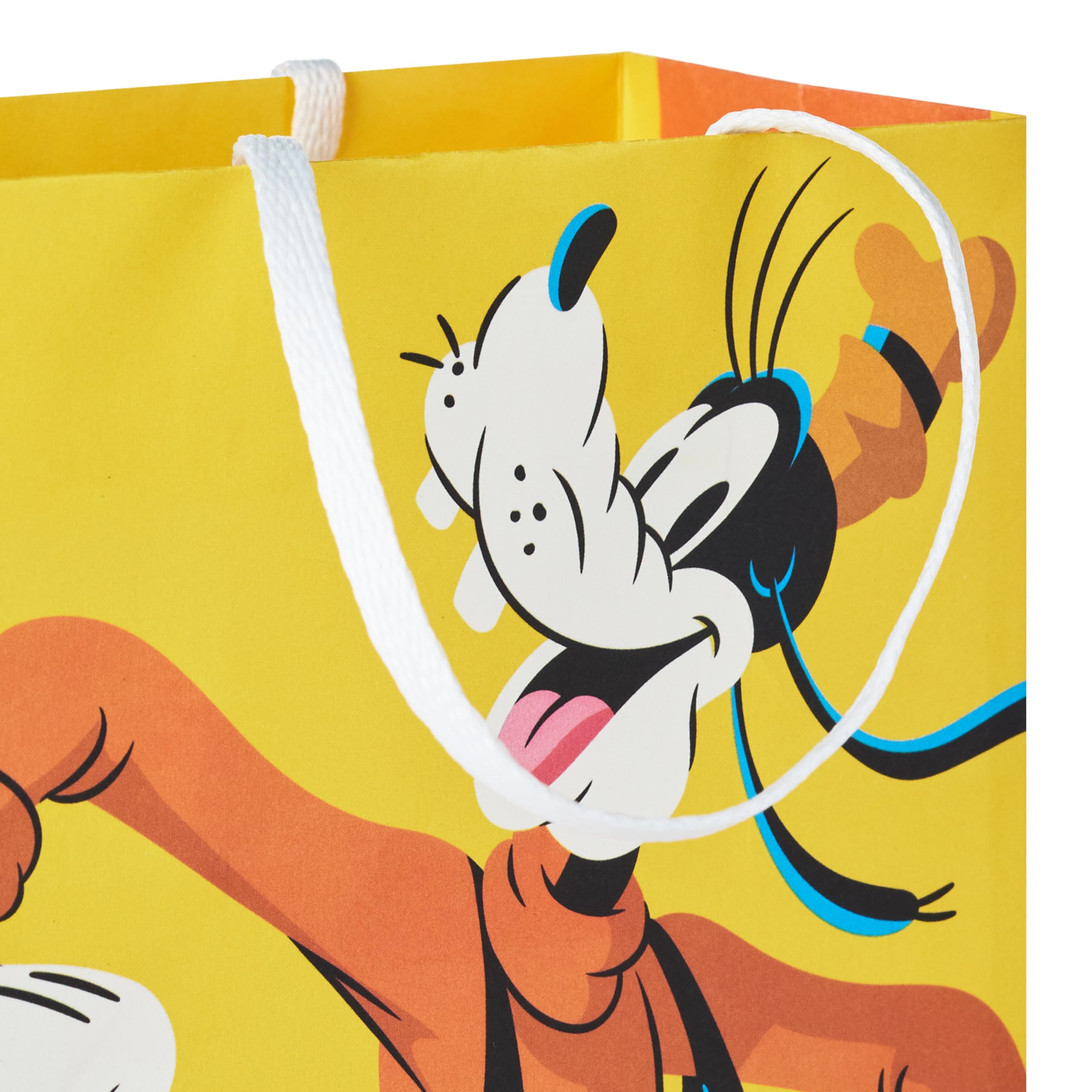 FUN DESIGNS: Set of 18 party favor bags includes 4 unique designs: Mickey Mouse on orange (5 count), Minnie Mouse on pink (5 count), Goofy on yellow (4 count) and Pluto on blue (4 count)