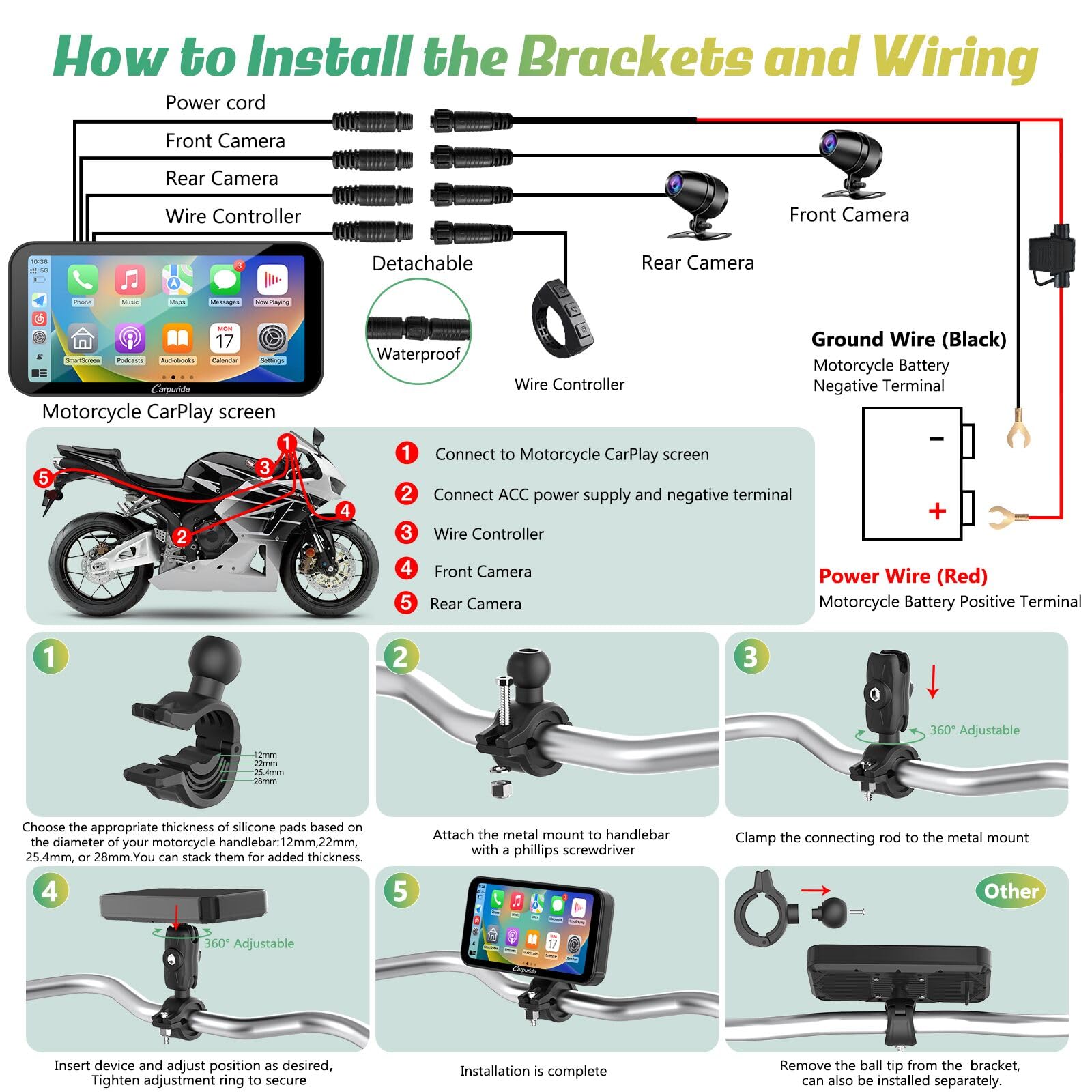 【Hassle-Free Installation】Installing the Portable CarPlay screen on your motorcycle is effortless with the provided bracket kits and tools. The specially designed bracket kit and screw system allow for a stable and secure setup, securely attaching the screen to the motorcycle handle. Enjoy a stable and convenient setup wherever your adventures take you.